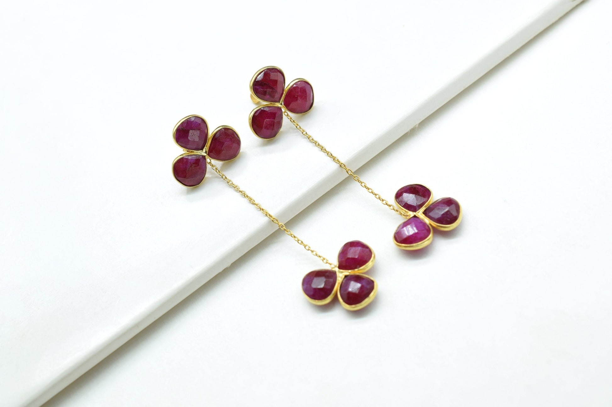 Natural Ruby Gemstone Earring/Bridal Earrings/Gold Plated Earring/Dangle Earring/Gold Plated Jewelry/Statement Earrings/Bridesmaids Gifts