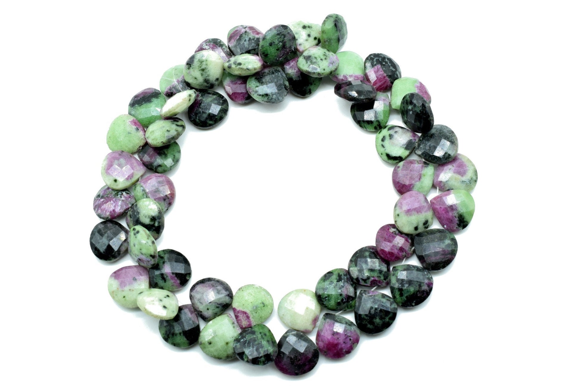 Natural Ruby Zoisite 14mm Heart Shape Briolettes,Green Raspberry Pink Semi Precious Gemstones,Ruby Zoisite Drilled Pear quality Briolettes