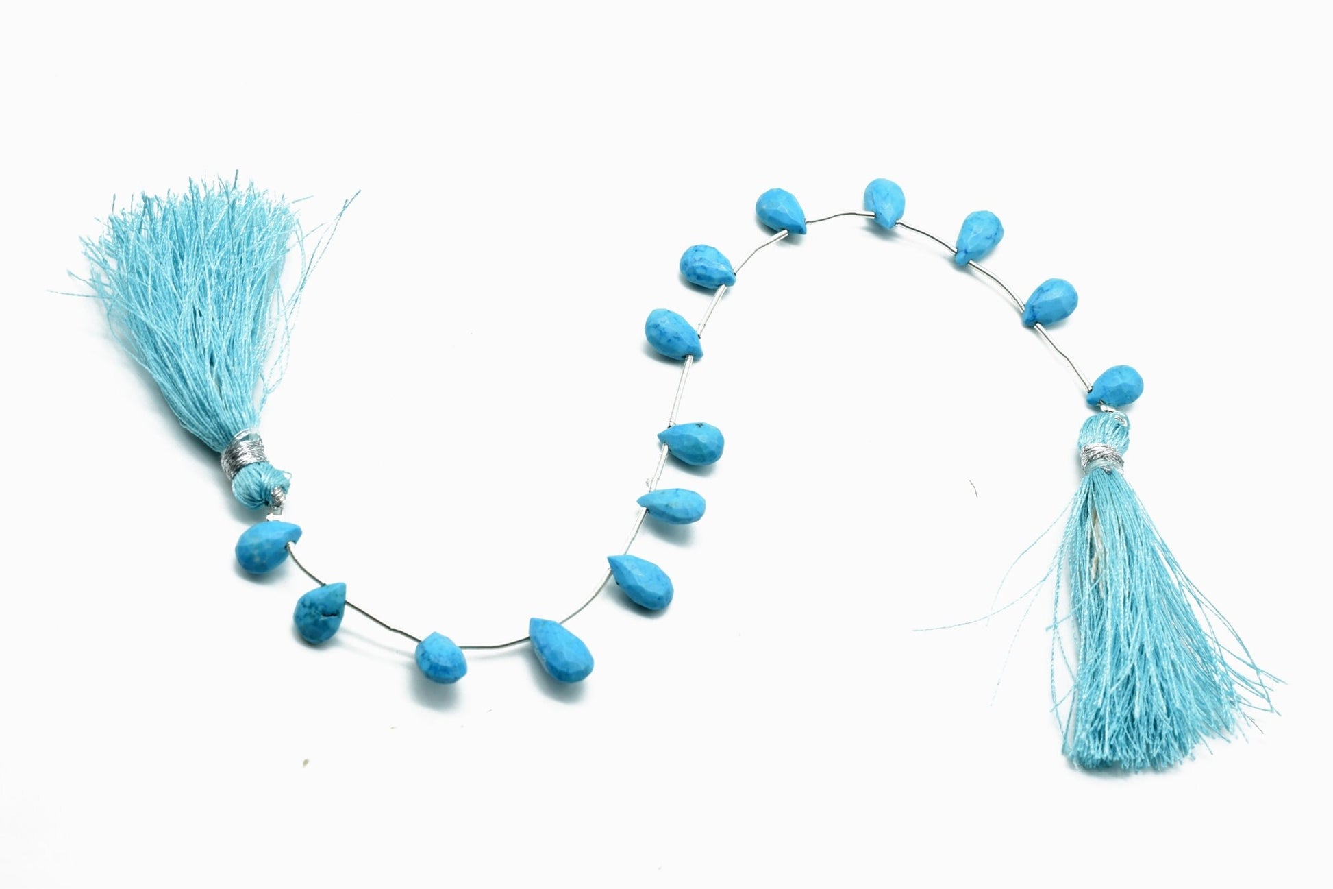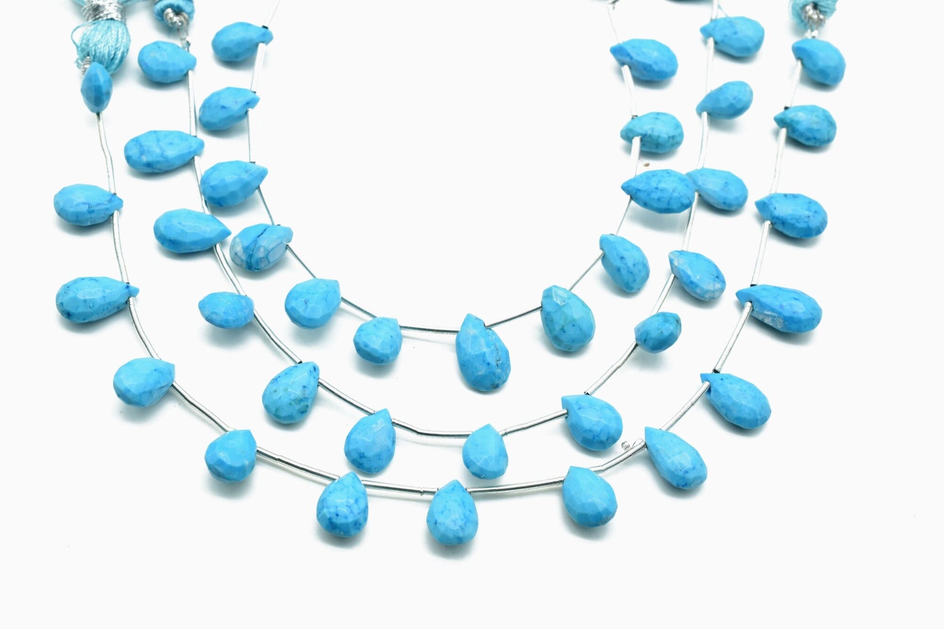 Natural Turquoise Drop Shape Briolettes,Turquoise teardrops,Genuine Turquoise-Faceted Pear Shape Briolette,Turquoise 7x10mm TearDrop shape