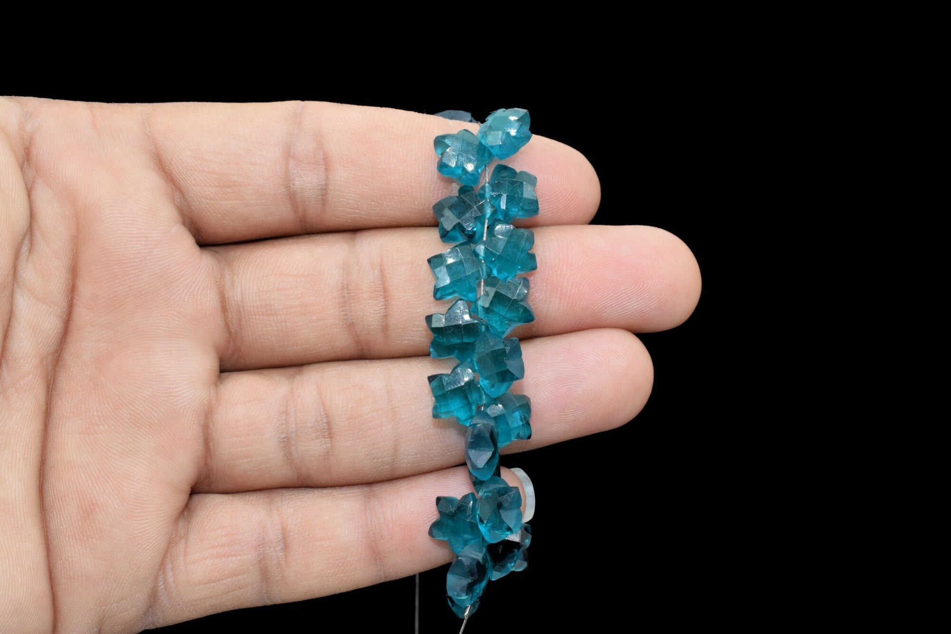 Neon Apatite 9mm star shape Faceted Briolette,Gemstone,Hand Carved Briolette,Carving Gemstone,Faceted Carved stones,Apatite carving gemstone