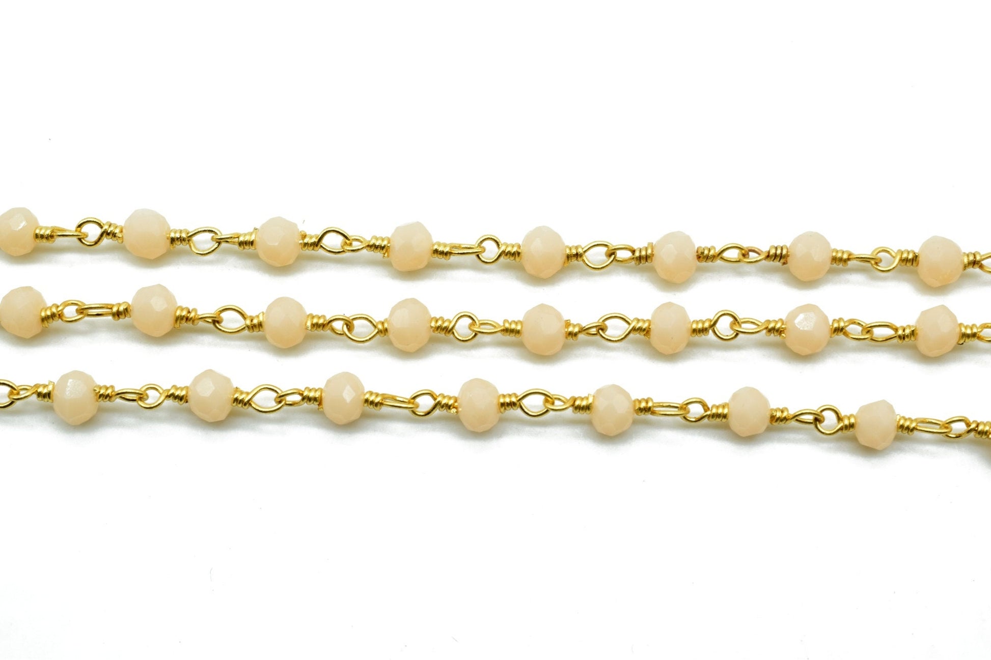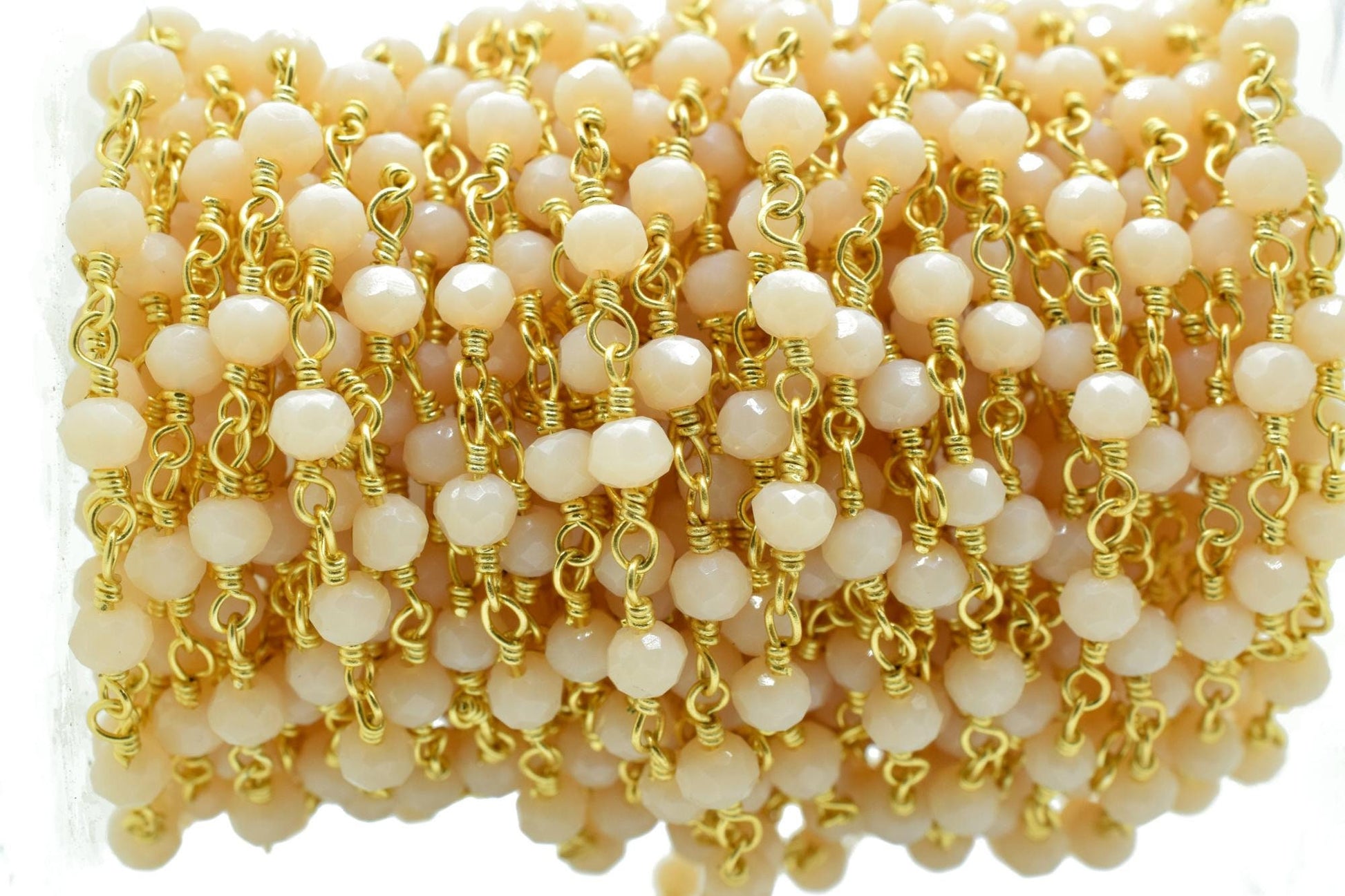Peach Agate 3mm Beaded Chain,Peach Agate Rosary Chains,Peach Agate Gold Plating Wire Wrap Chain,Brass chainJewelry Making Chain Rosary chain