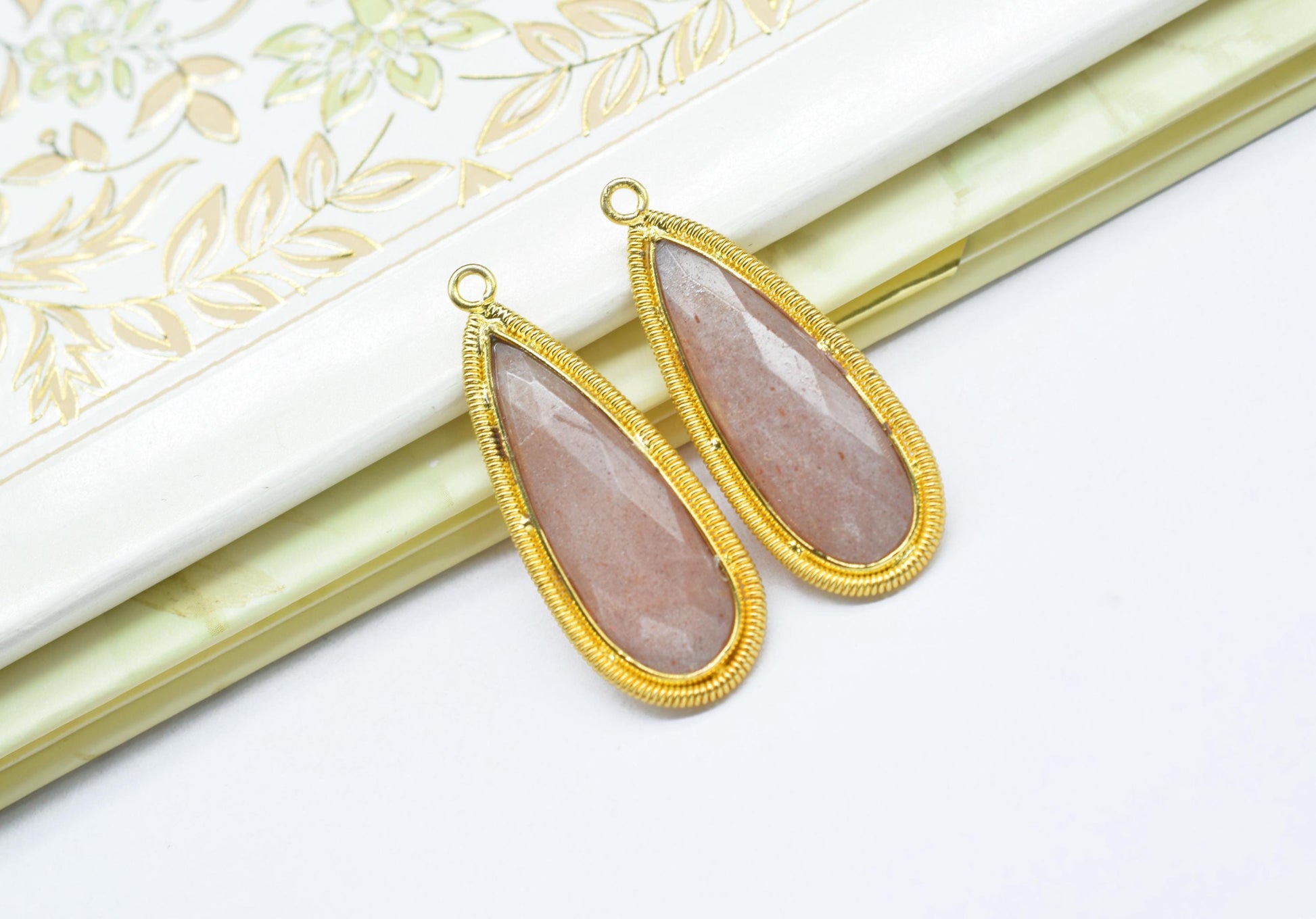 Peach Moonstone 10x30mm Charms,Gemstone Bezel connector,Component Pendant,Moonstone Jewelry,Designer Pendant/Handmade Charms,Bday Gift