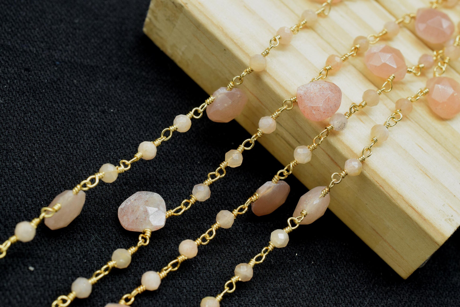 Peach Moonstone Beads Rosary,Silver Plated,Wire Wrapped link Stone Rosary,Heart Shape Briolette Chain, New Style Rosary,moonstone rosary,