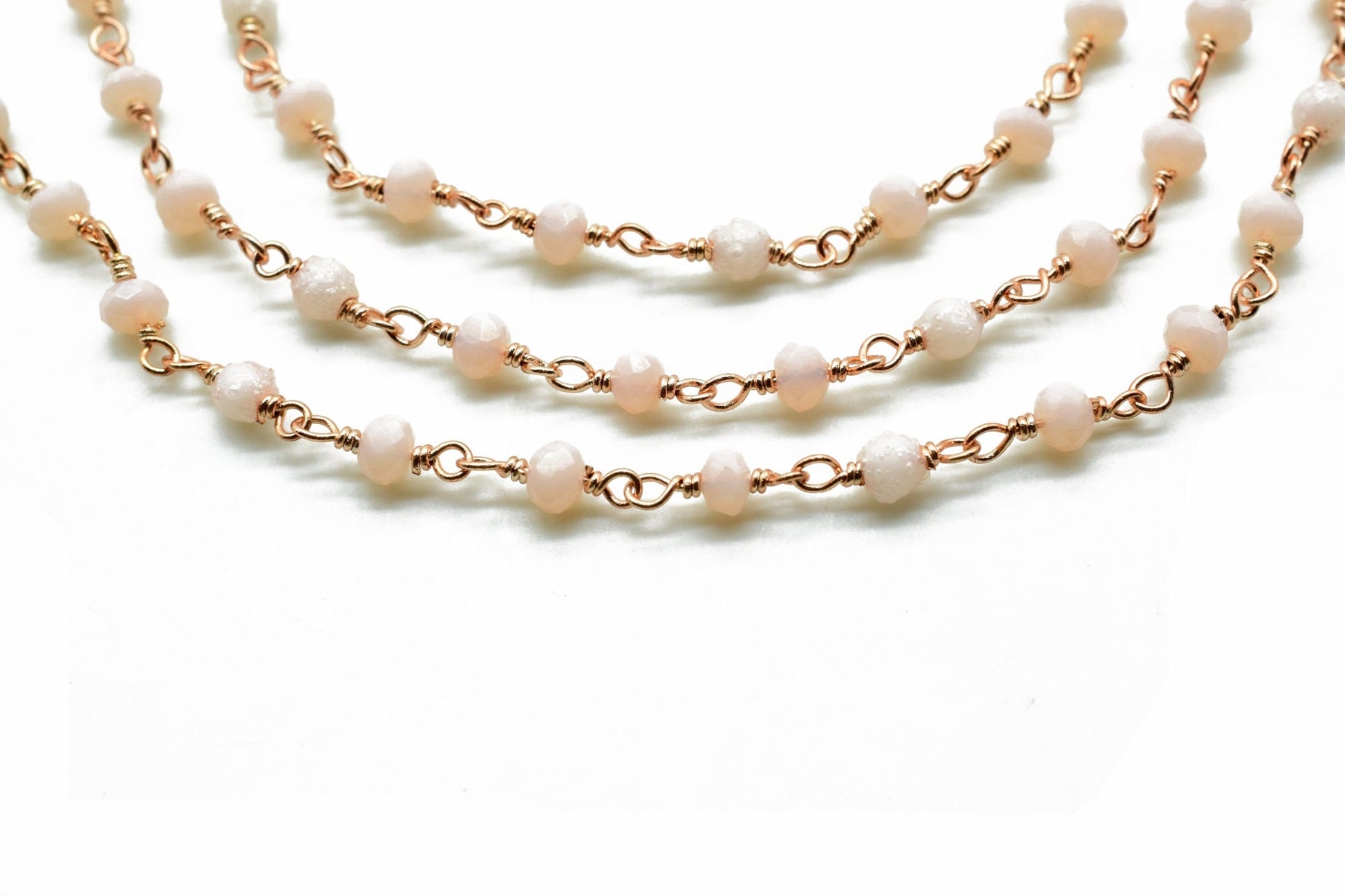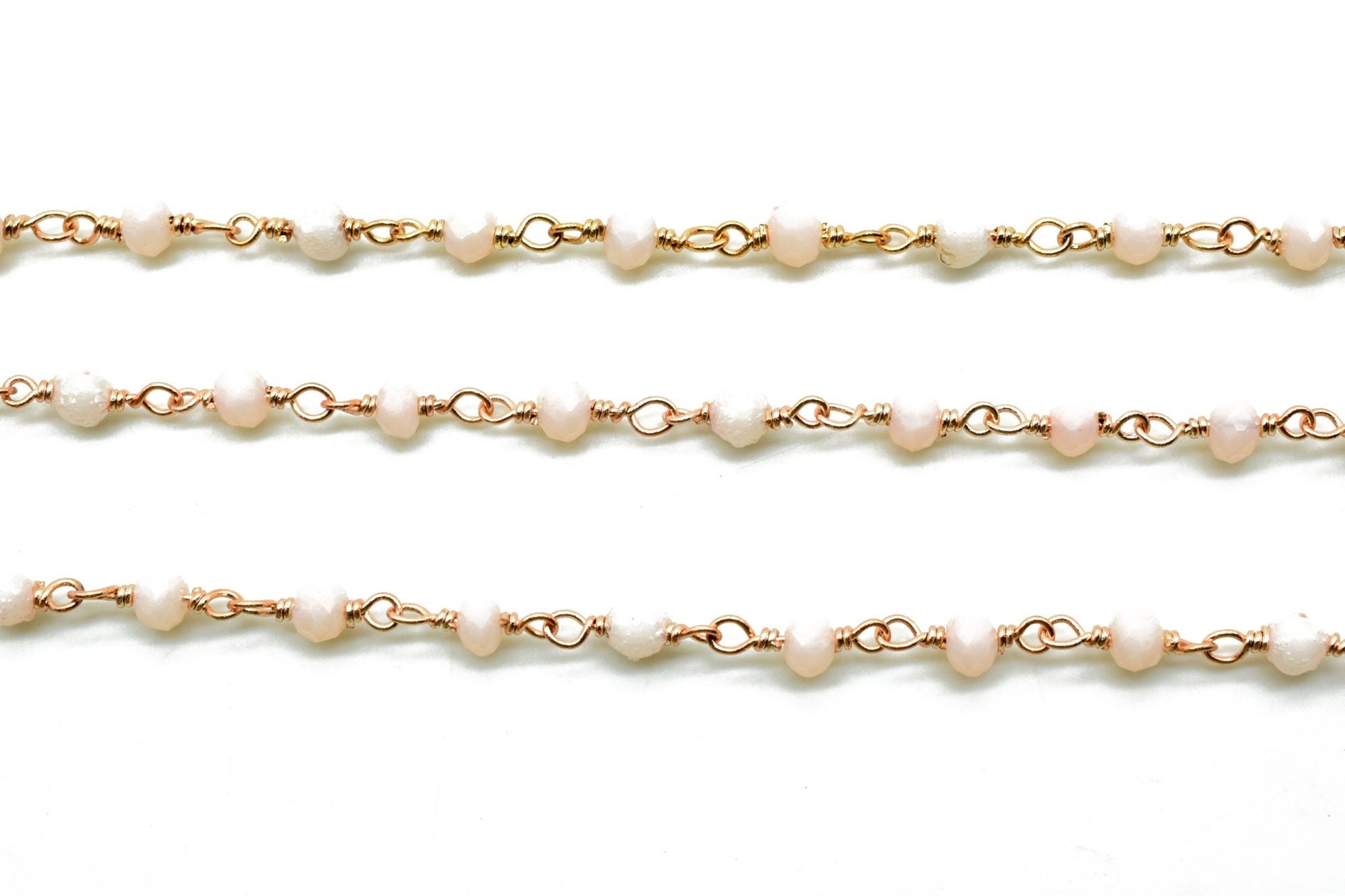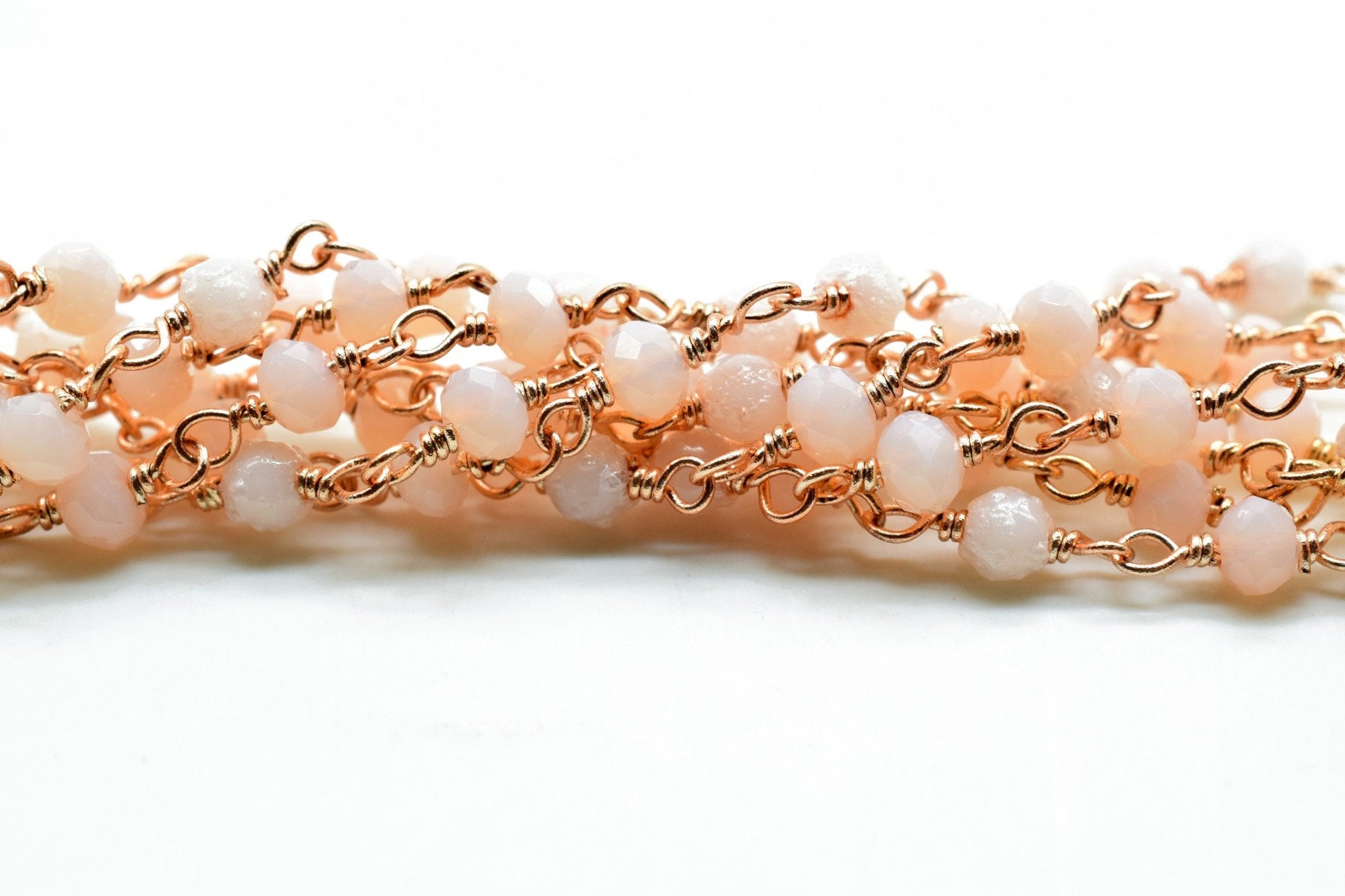 Peach Moonstone Chalcedony Hydro Faceted Wire Wrapped Beaded Rosary Chain,Brass chainJewelry Making Chain Rosary chain,gemstone beaded chain