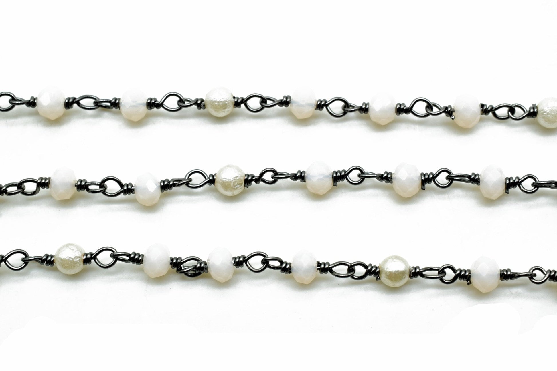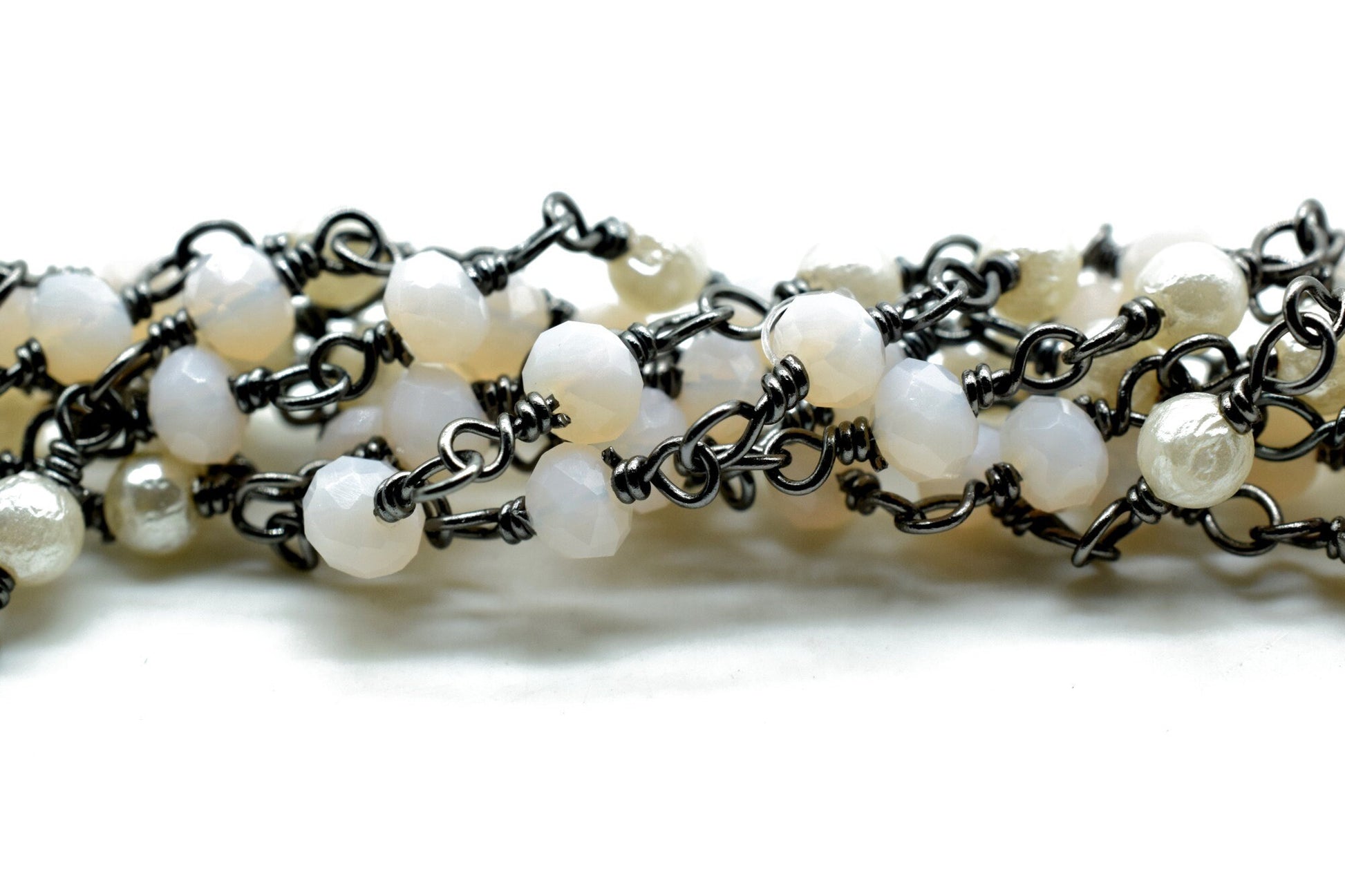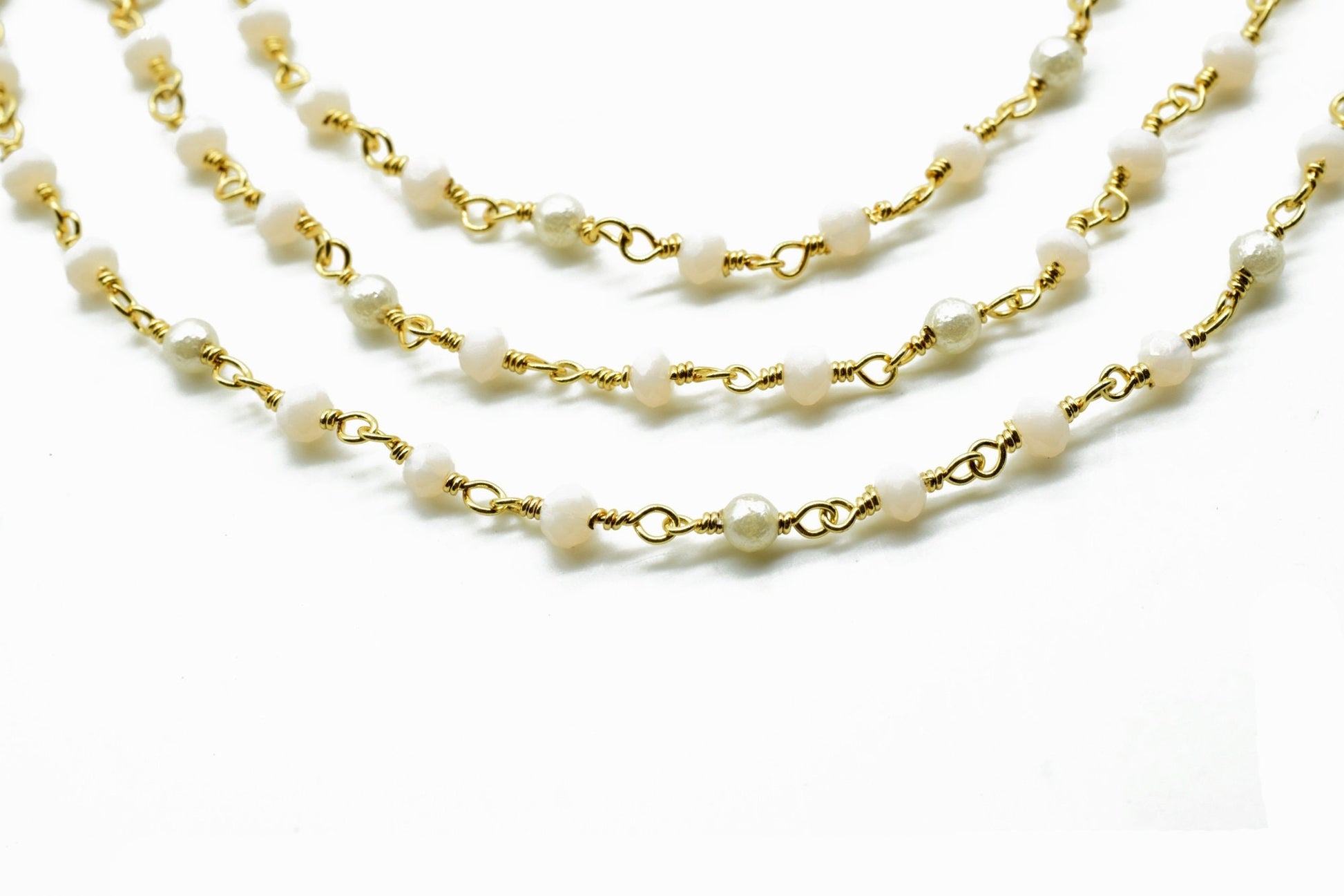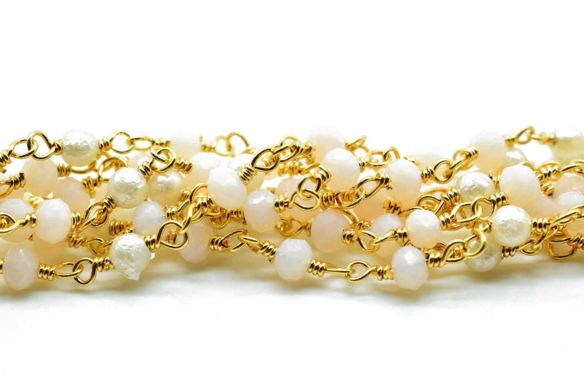Peach Moonstone Chalcedony Hydro Faceted Wire Wrapped Beaded Rosary Chain,Brass chainJewelry Making Chain Rosary chain,gemstone beaded chain