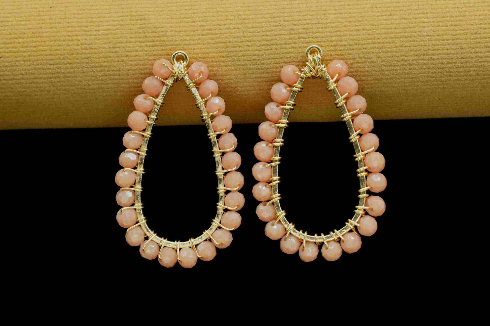 .Peach Moonstone Gemstone Earrings Components,-Handmade Earrings,Dangle Earring Components -Findings Earring Components- Connector Jewelry,