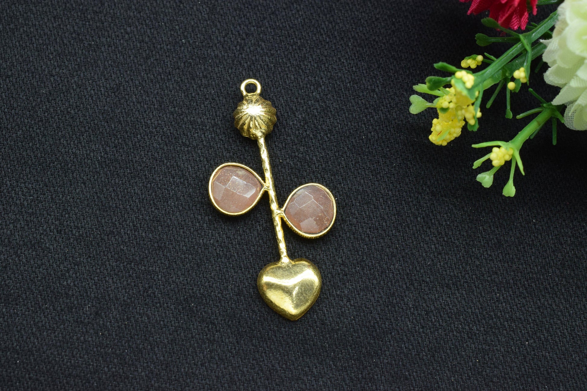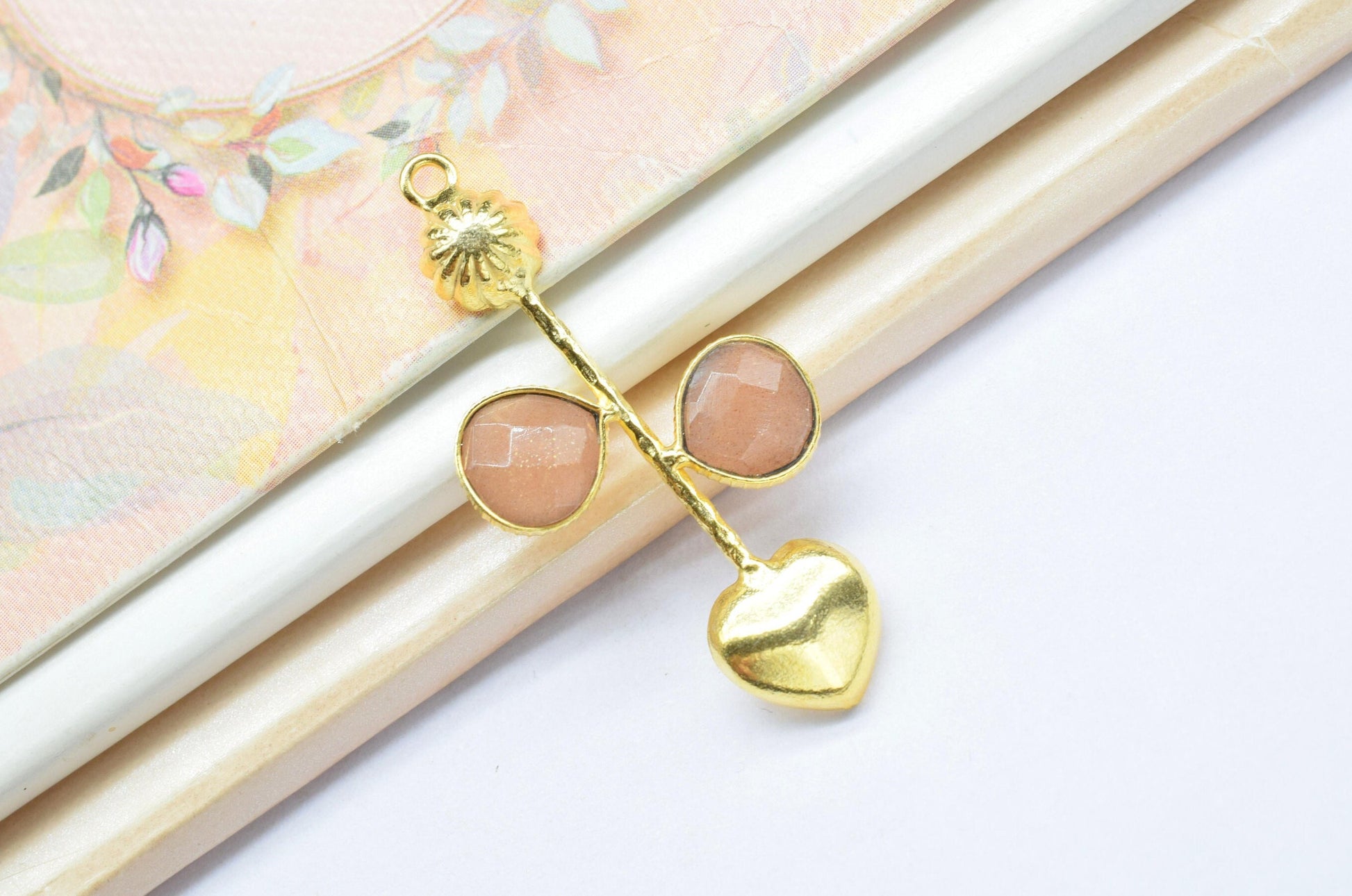 .Peach Moonstone Pendant/Gemstone Component/Faceted Cut Peach Moonstone/Single Bail Charm/Necklace Pendant/Heart Shape Charm/Wholesale Supply