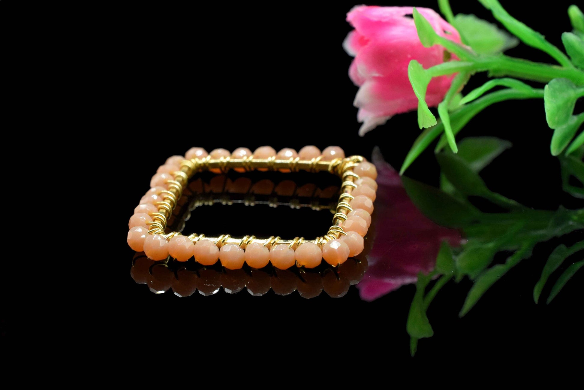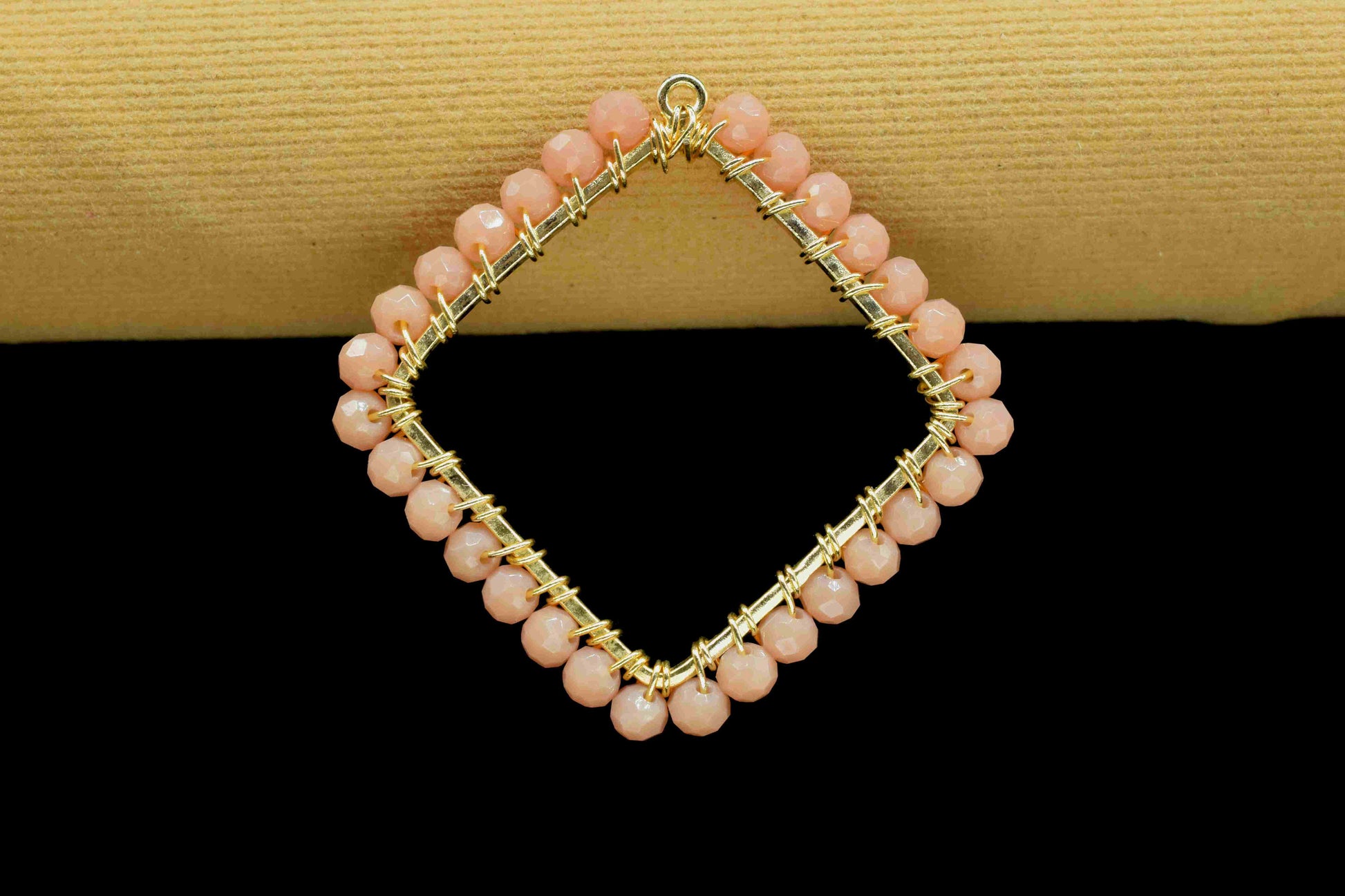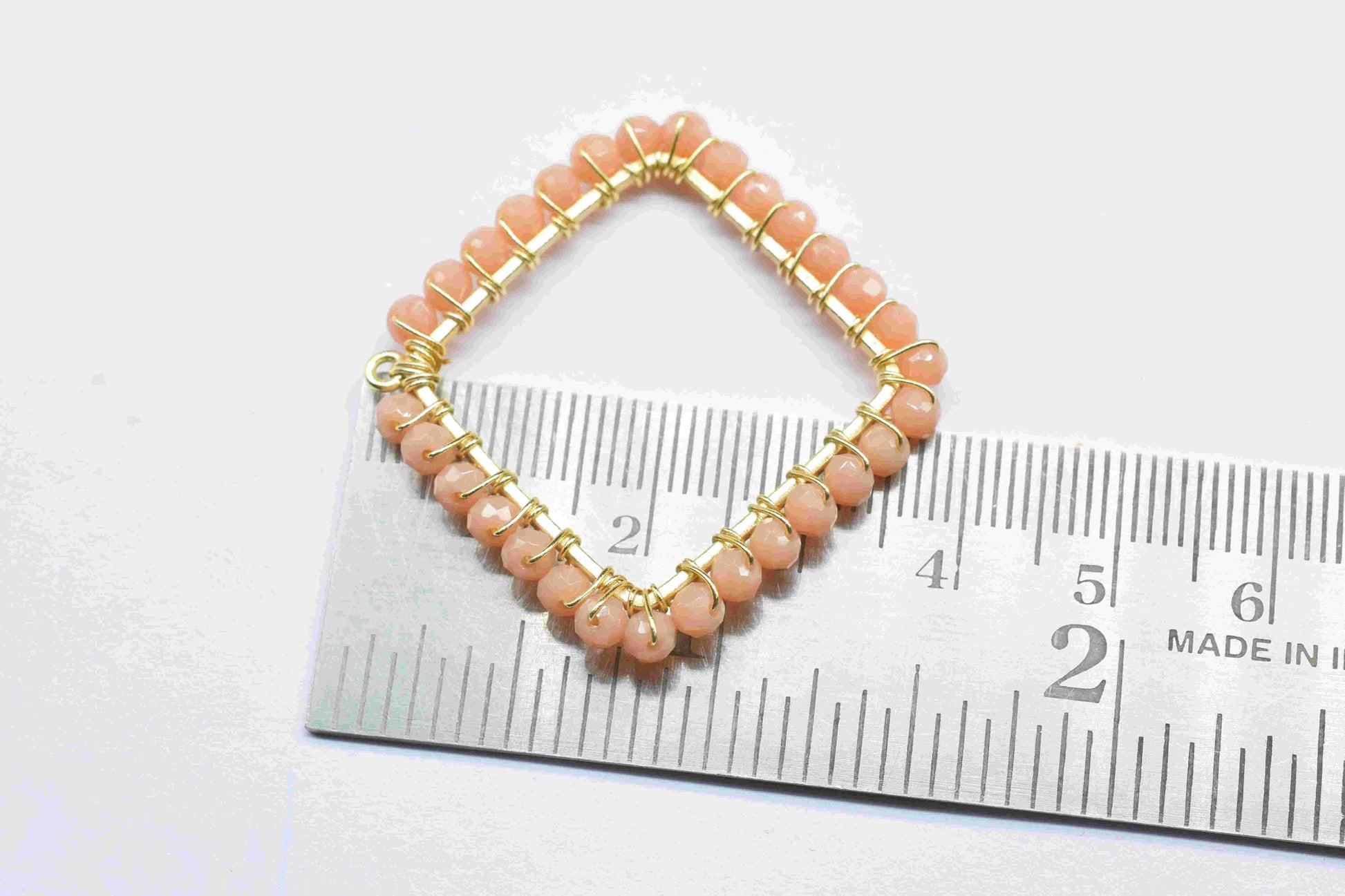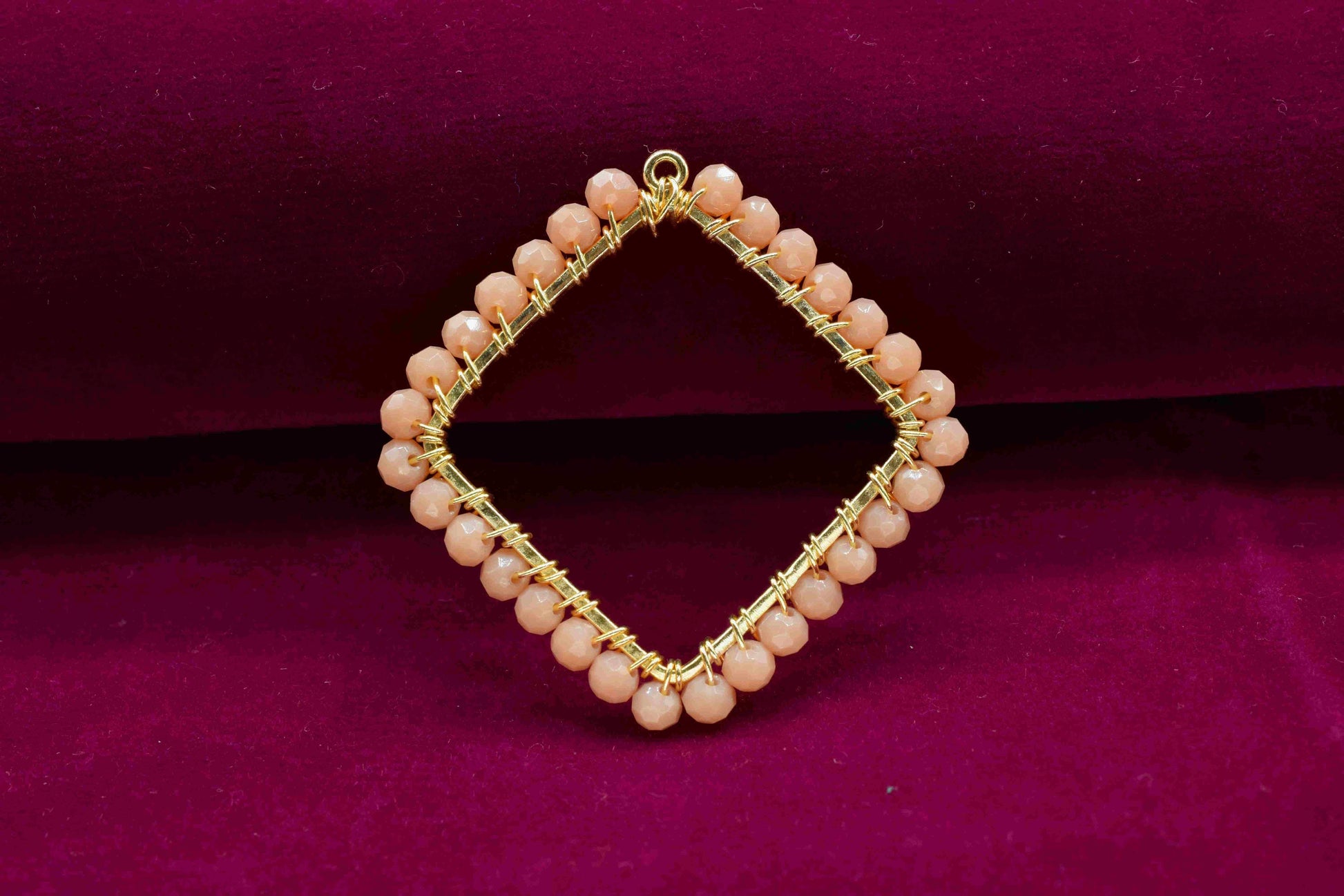 .Peach Moonstone Wire Wrapped Dangle Connector,Square Pendant Component,Finding Component Peach Jewellery,Beads link Component,Handmade Jewellery