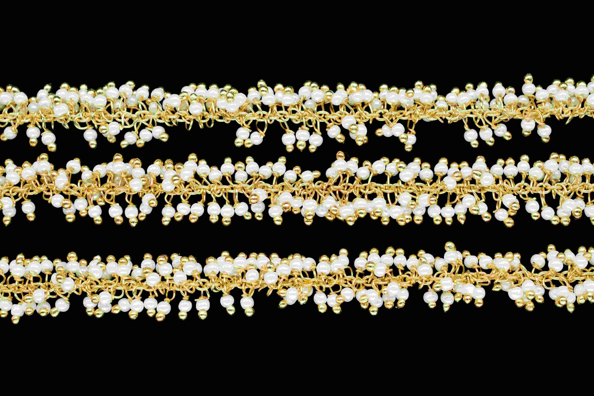 Pearl 2mm Cluster Rosary Chain,Gold Plated Chain,Wire Wrapped Chain,Jewelry Supply,Plain Pearl Beads Gold Plated dangling chain,grape chain