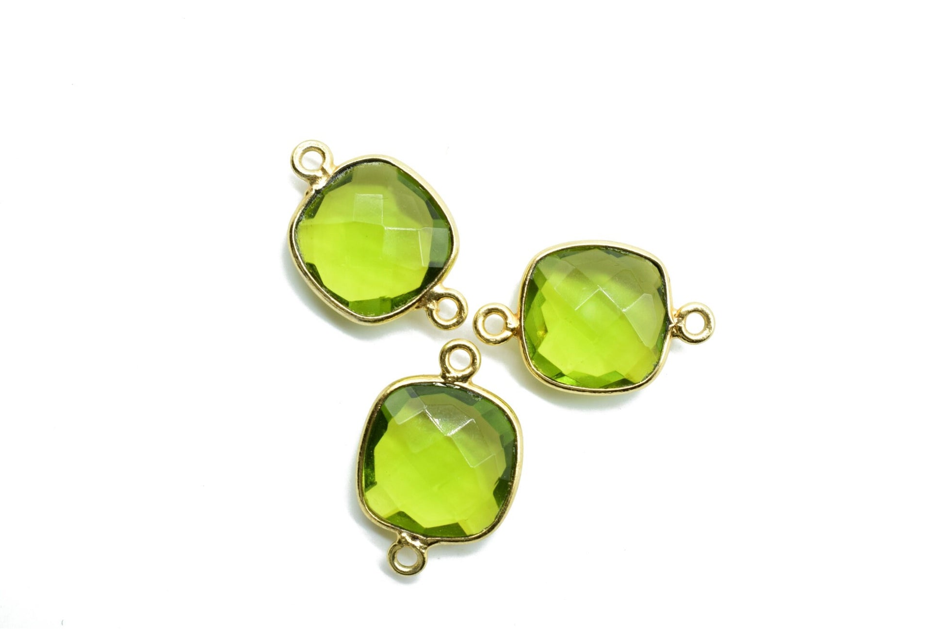 Peridot 12mm cushion double loop connectors,Elegant Peridot Gemstone Components cushion Shape Connectors,Earring connectors,Earrings Pendant