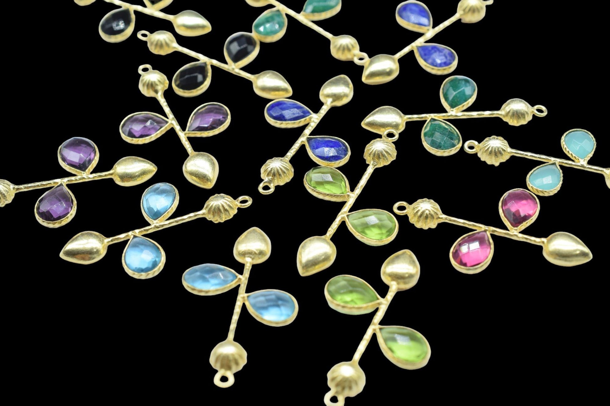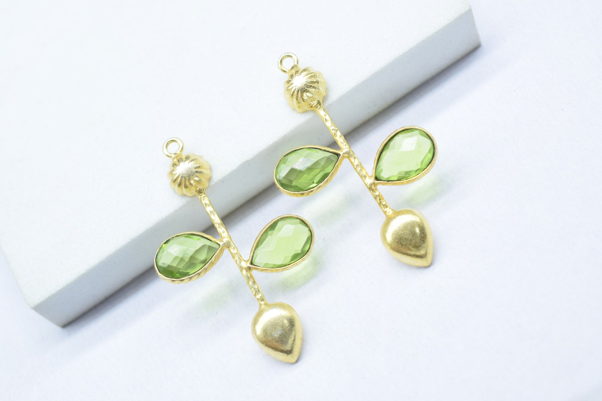 Peridot Teardrop Faceted Bezel Connector,Green Gemstone Pendant,Gemstone Findings,Green Peridot Teardrop Pendant Charms,Brass Frame Gemstone