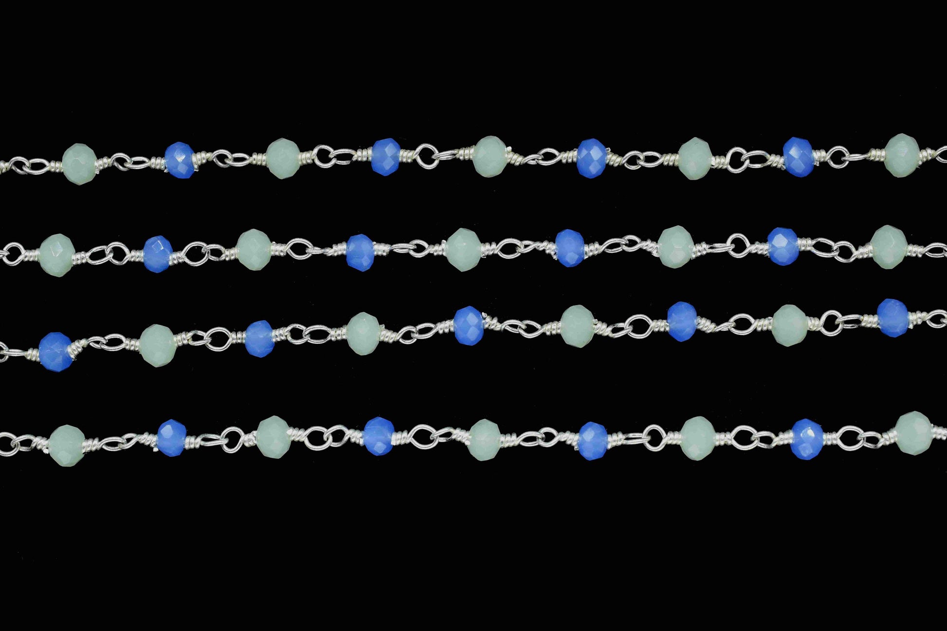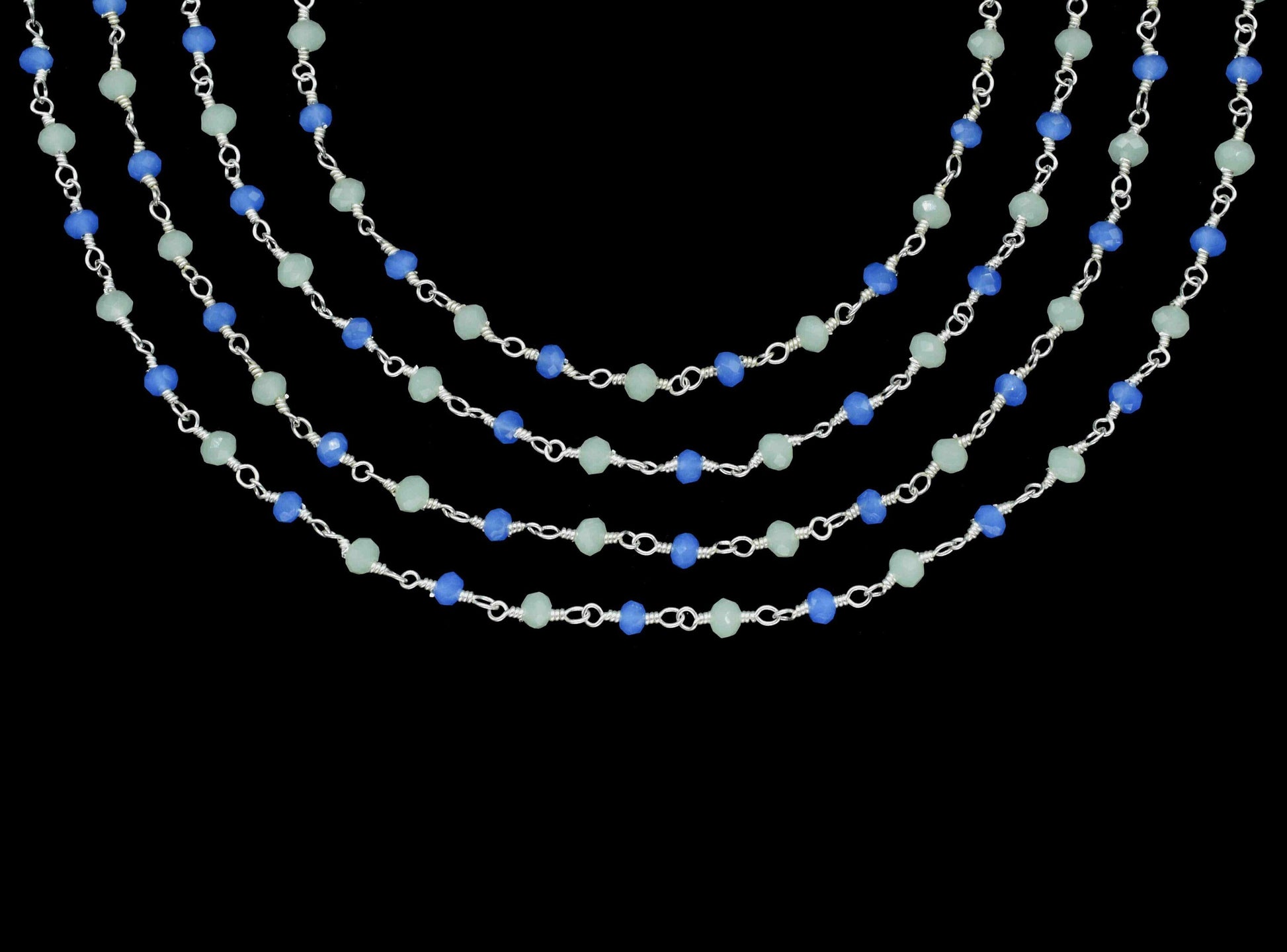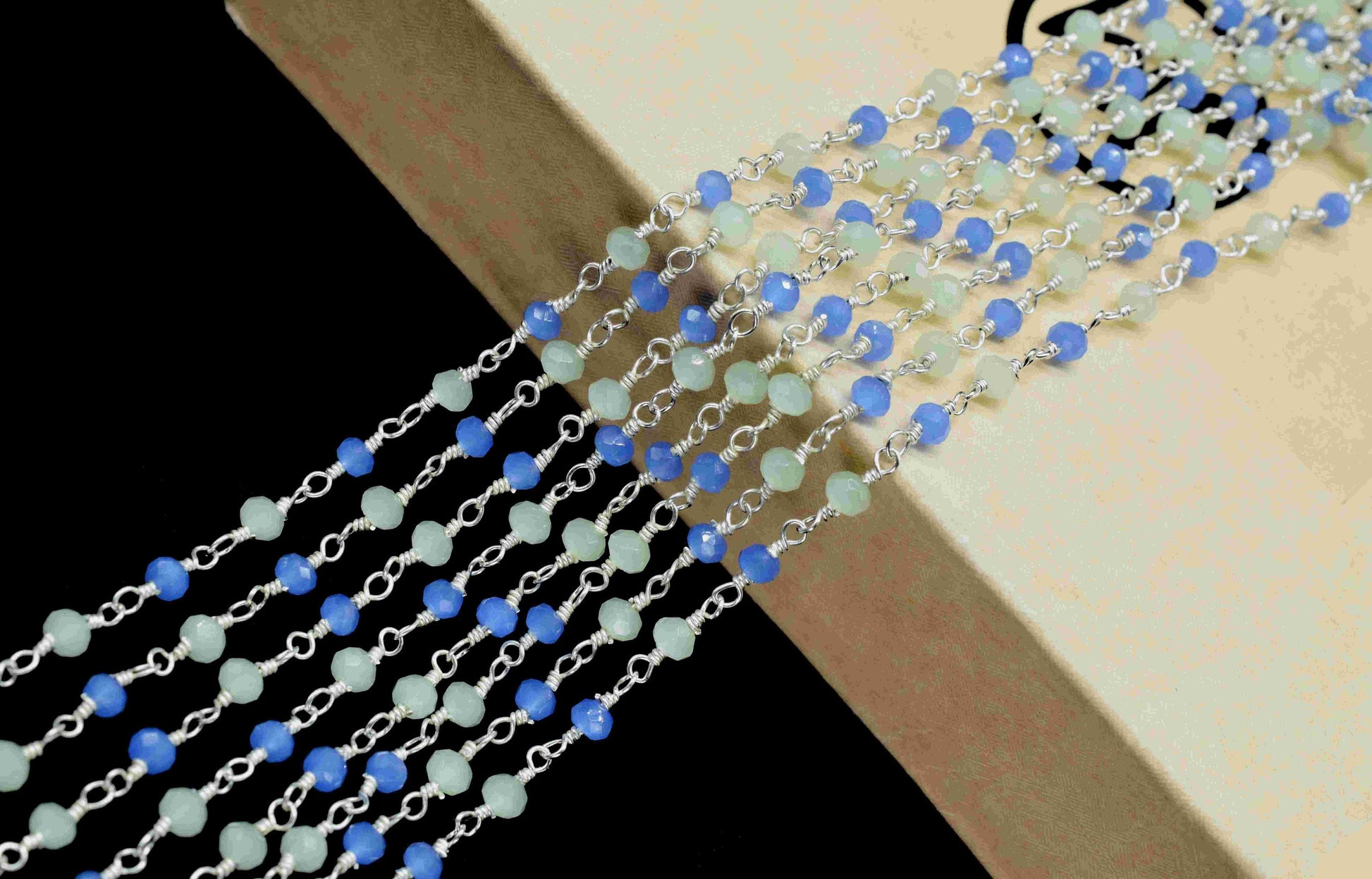 Peru Chalcedony 3mm Beaded Chain,Multi Stone Beaded Rosary Chain,Wire Wrapped Rosary Chain,Blue Quartz stone links,Handmade Jewelry Making
