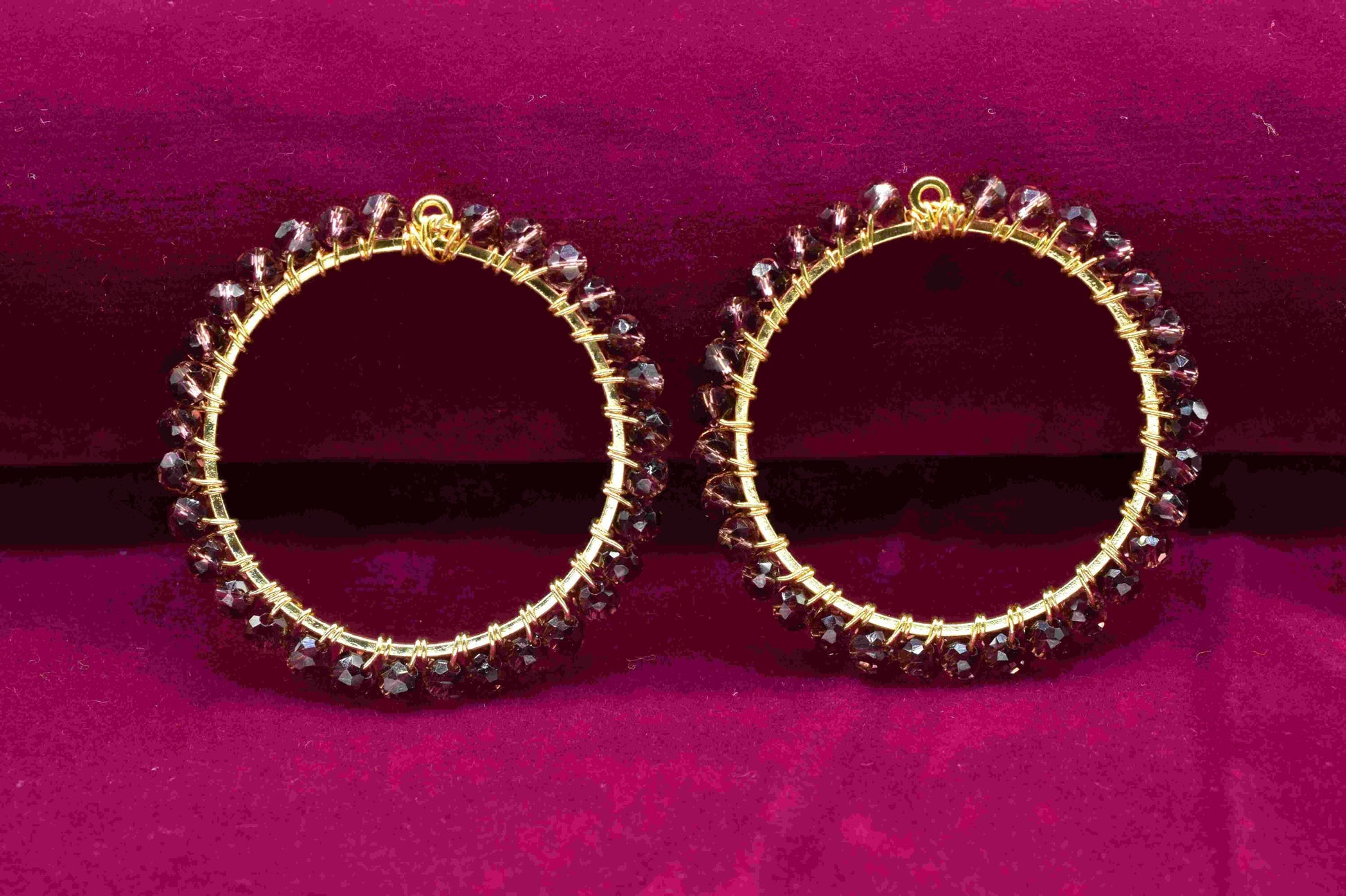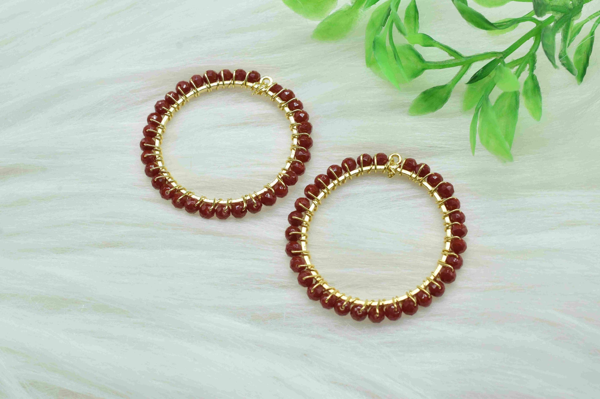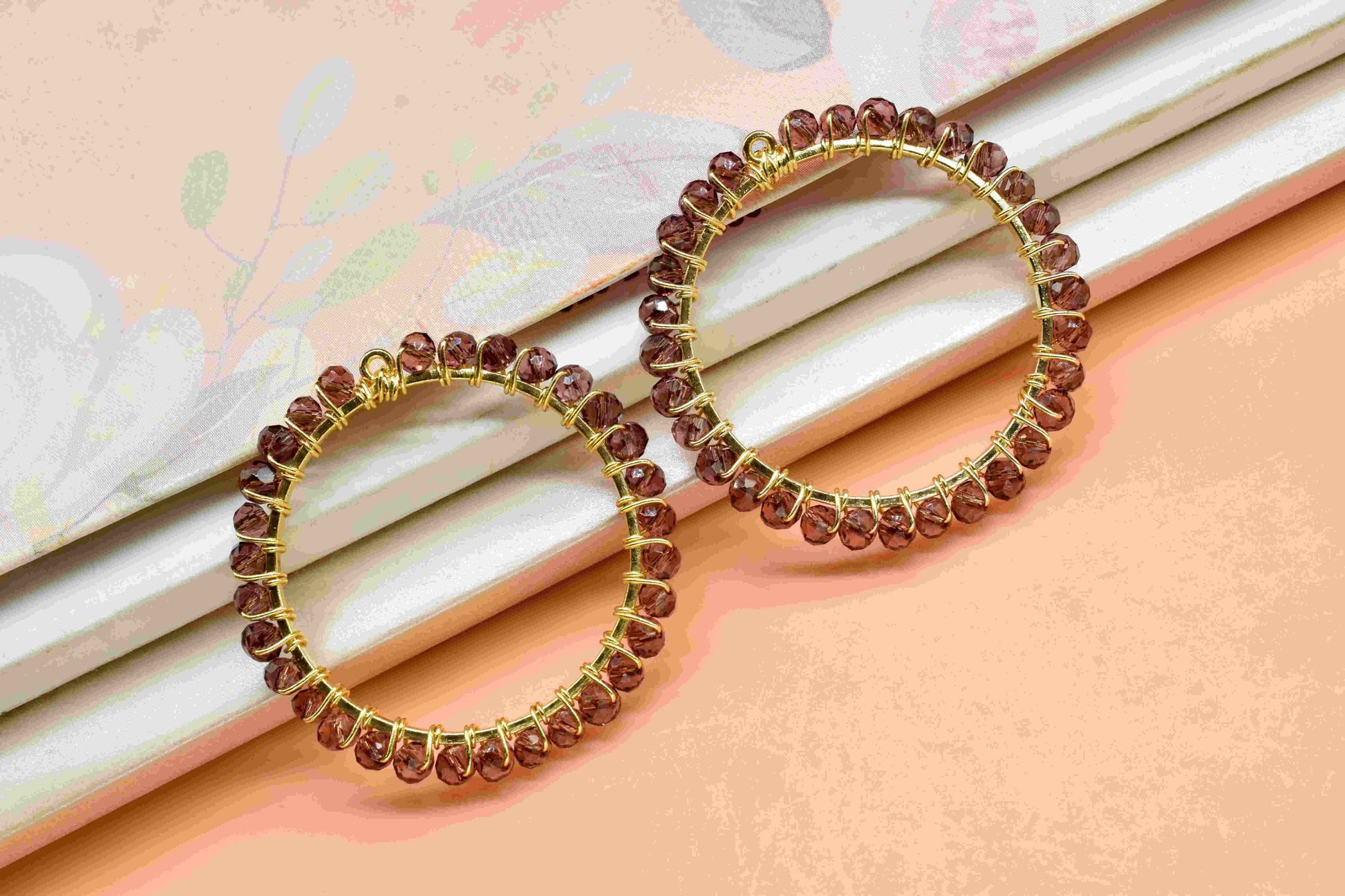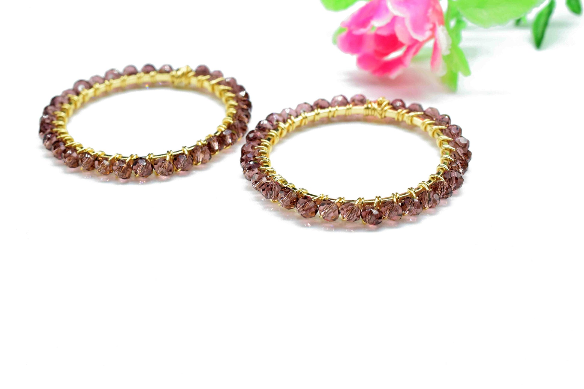 .Pink Amethyst Wire Wrapped Dangle Connector, Circle Pendant Component, Handmade Earring, Beaded Hoop Earring, Finding Component Amethyst Jewellery