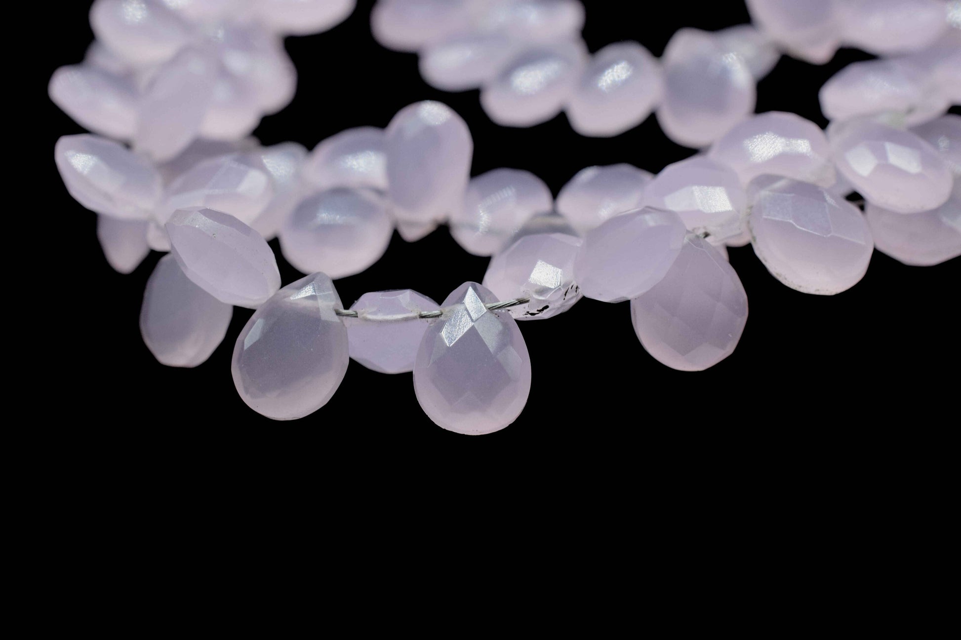 .Pink Chalcedony 6x8mm Pear Shape Briolettes,Micro Faceted Pear Shape Beads,7Inch Strand,Rose Quartz Faceted Teardrop,Jewelry Making Gemstone