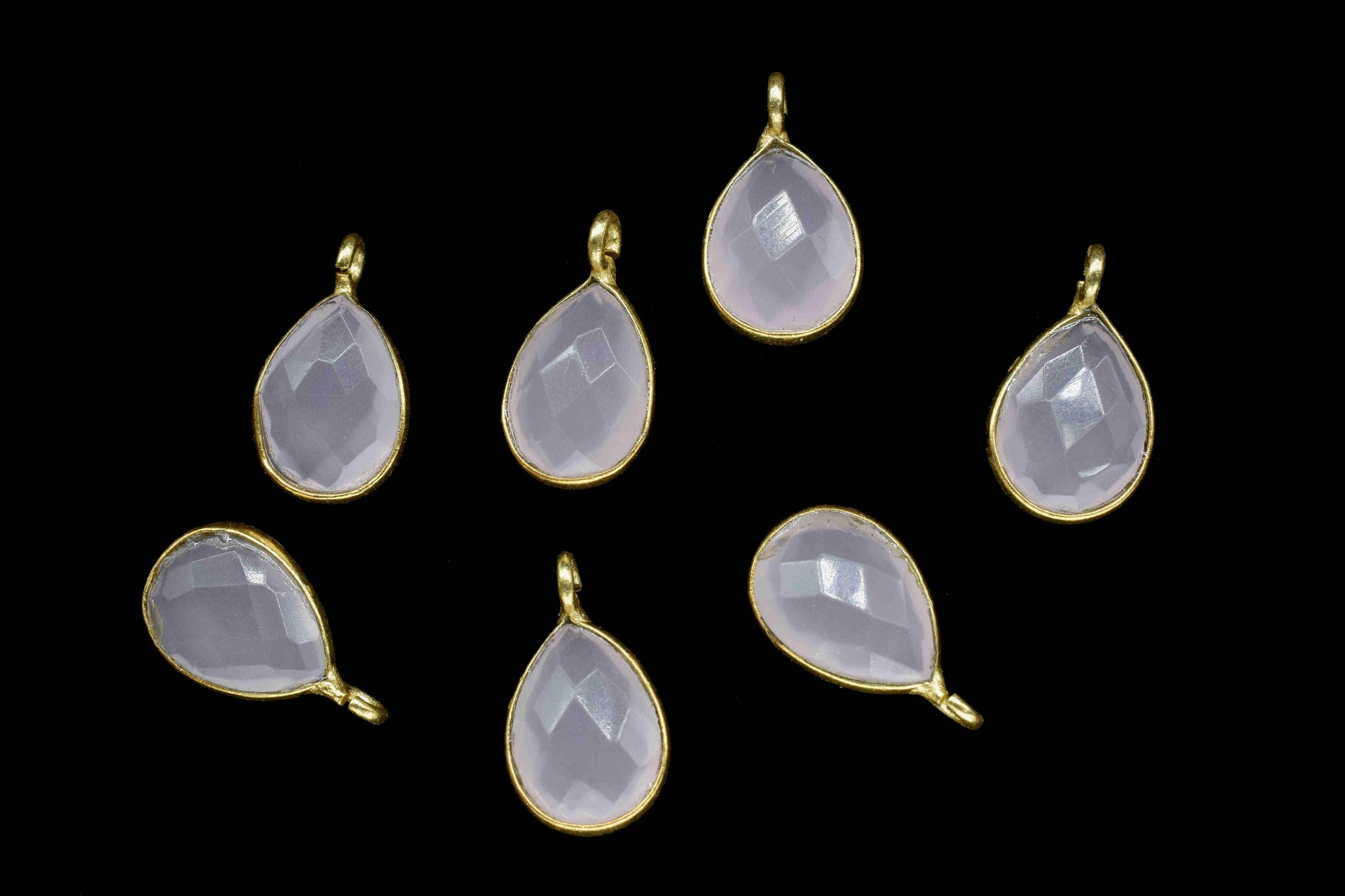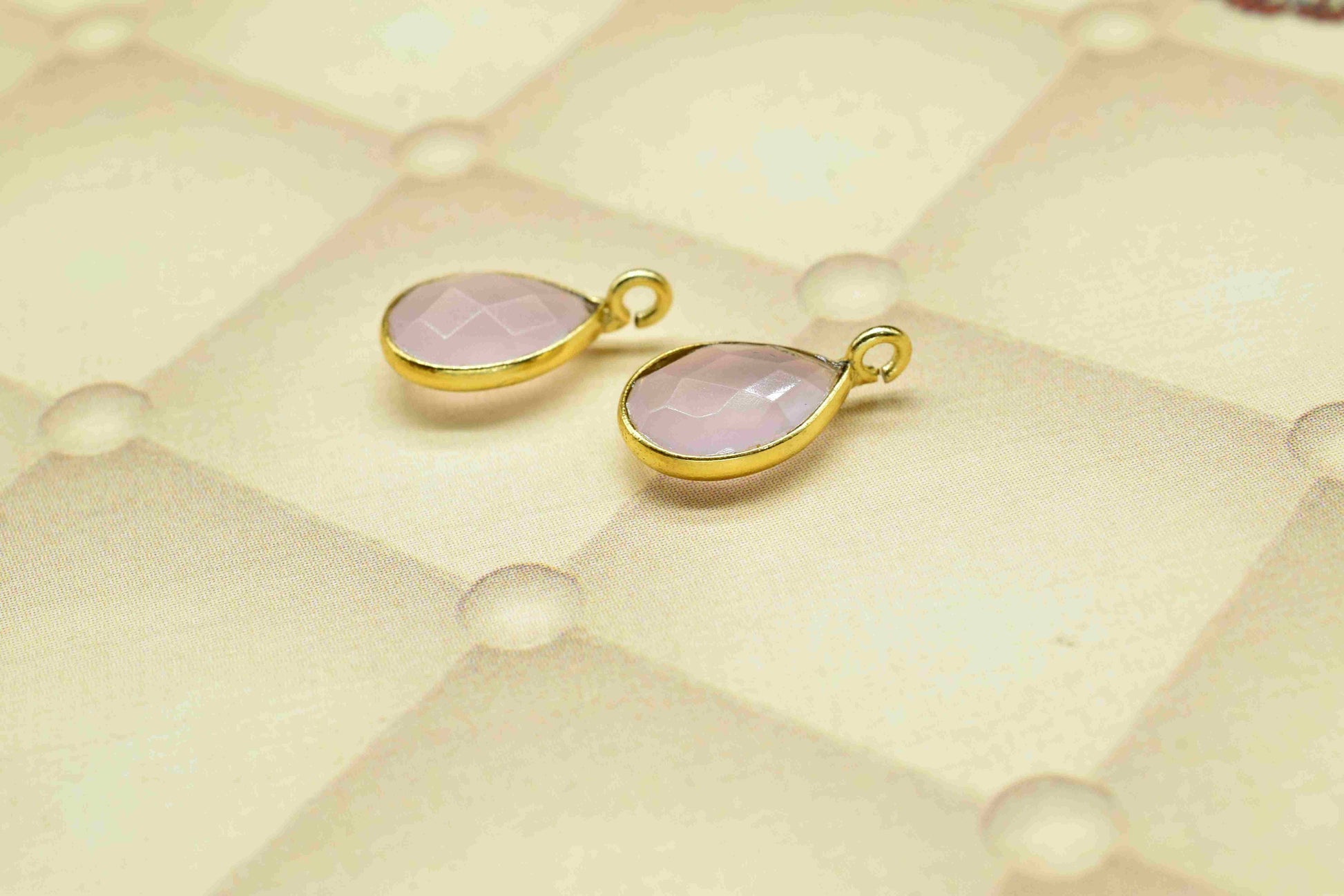 .Pink Chalcedony 7x10mm Earring Connector, Gemstone Connector Pendant, Earring Findings, Jewellery Making Connector,Stud Earring,Jewellery Supply