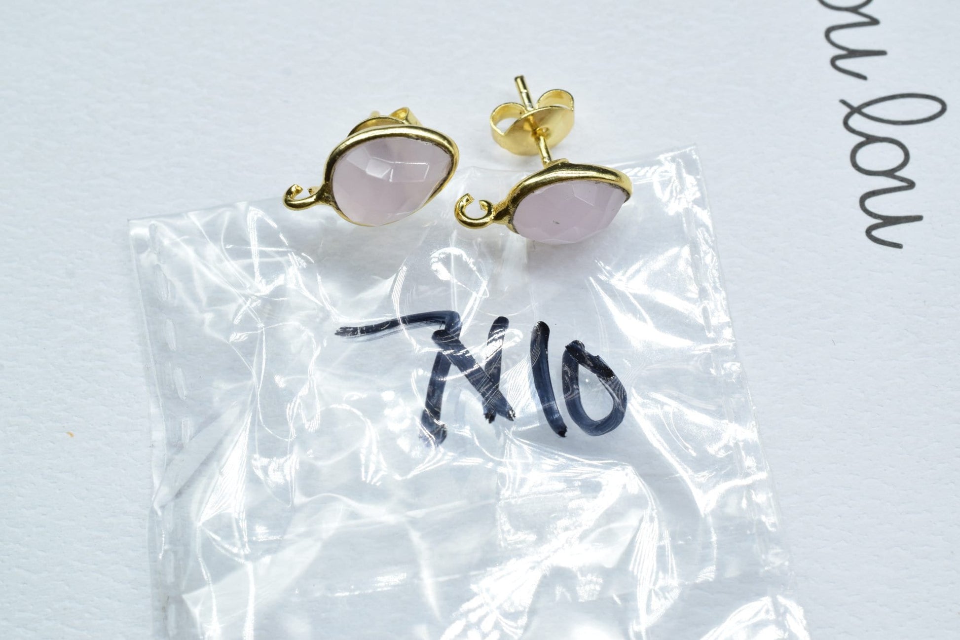 Pink Chalcedony 7x10mm Earring Connector,Gemstone Connector Post Stud,Jewelry Supply,Earring Finding,Jewelry Making Connector,Ear Post Stud