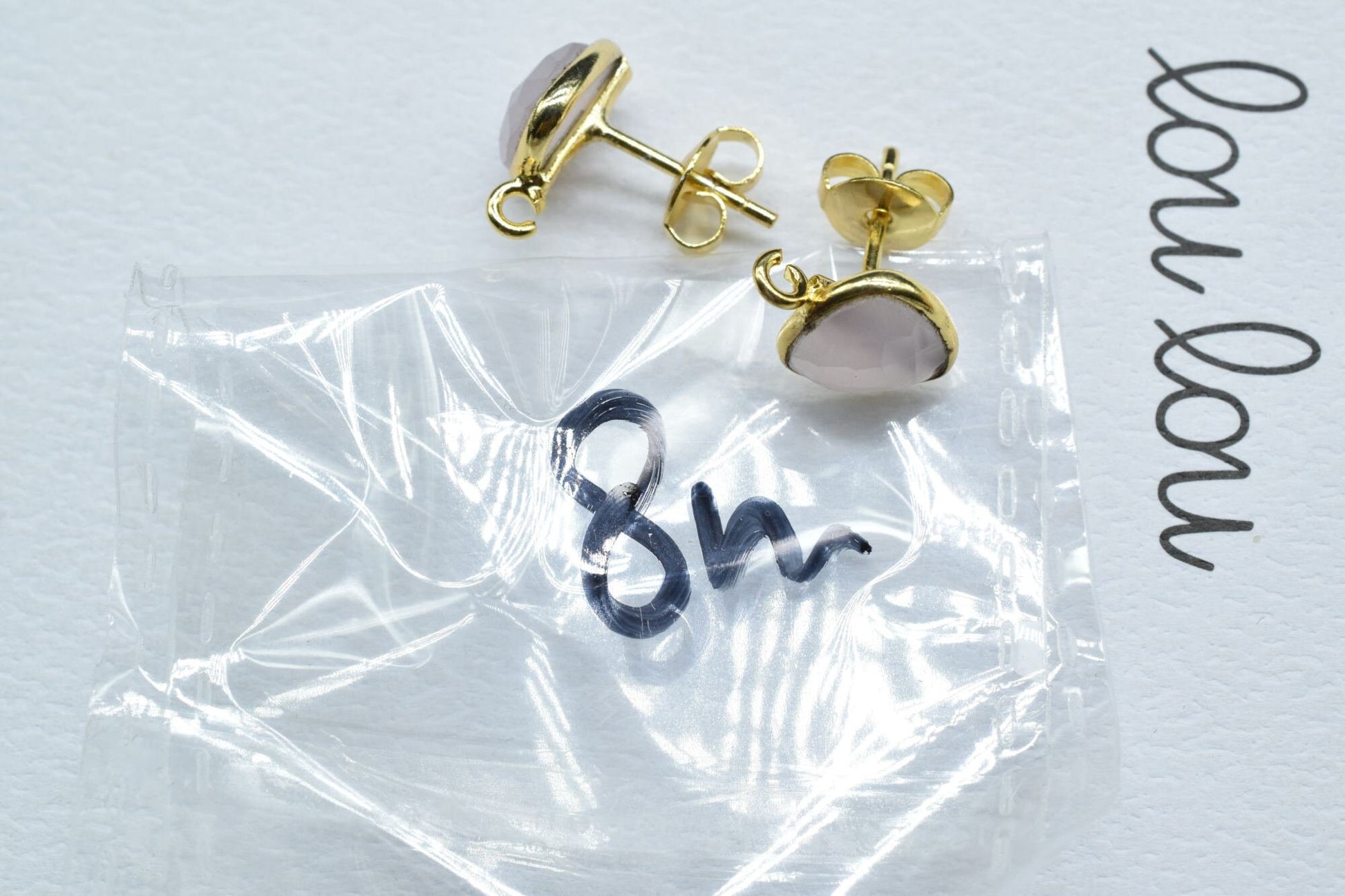 Pink Chalcedony 8mm Earring Connector,Triangle Earrings Connector,Earring Making Connector,Bezel frame Earrings Connector,Gemstone Connector