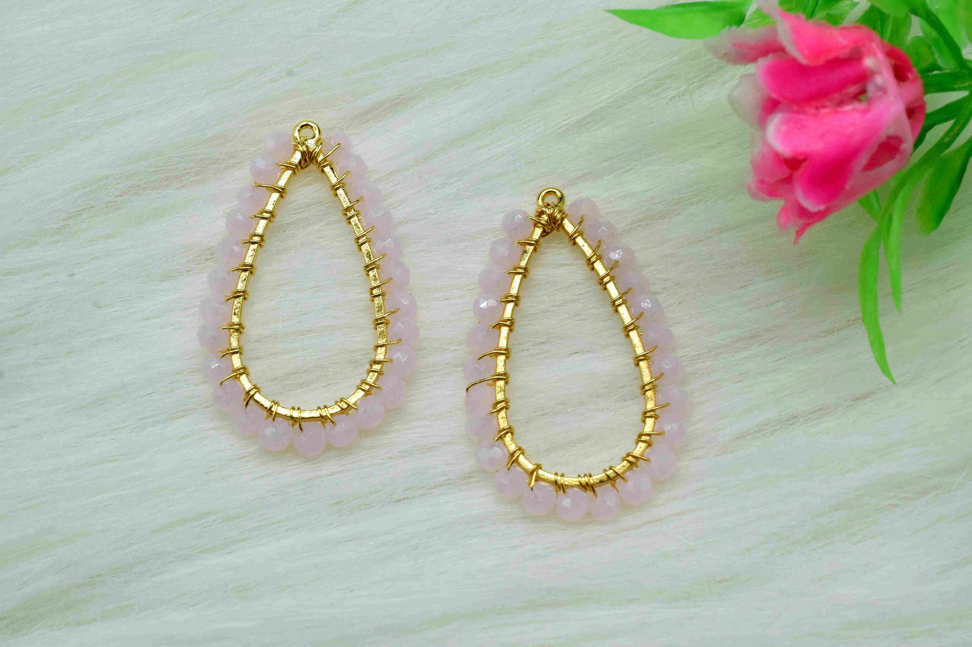 .Pink Chalcedony Beaded Earring,Gemstone Components,Handmade Earring,Dangle Earring Components,Findings Earring Components- Connector Jewelry