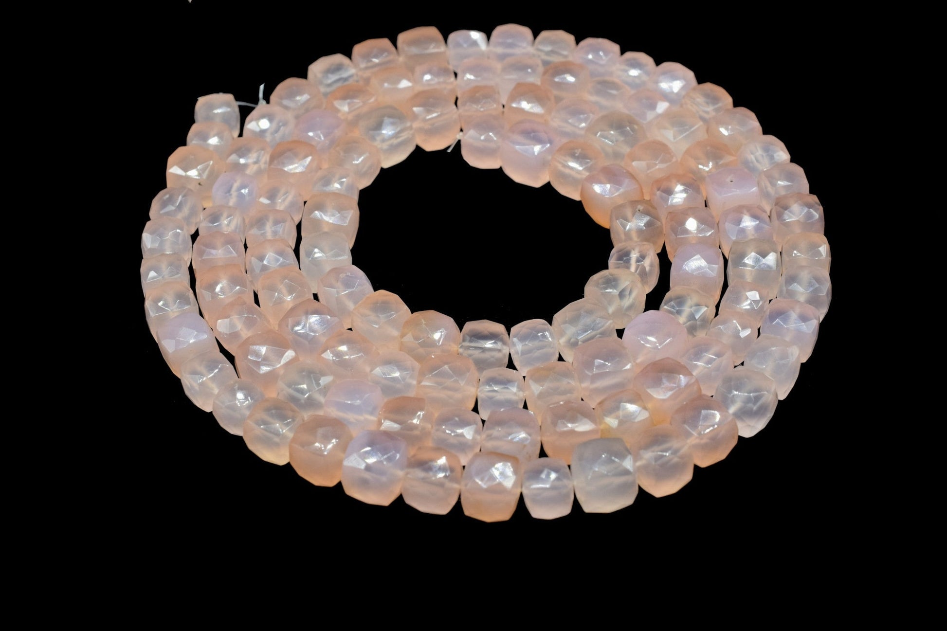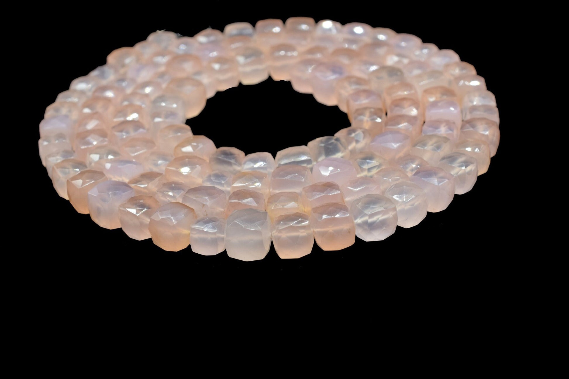 Pink Chalcedony Faceted Cube Beads, Pink Chalcedony Faceted Box,Square Dice Cube beads,8mm Pink Chalcedony Cube,Chalcedony For Jewelry beads