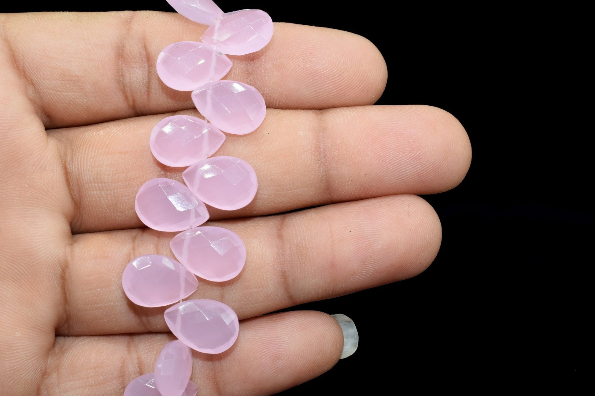 Pink Chalcedony 9x13mm Faceted Pear Briolettes - Faceted Briolettes - Calibrated Gemstone - Chalcedony Pear Briolette,wholesale beads