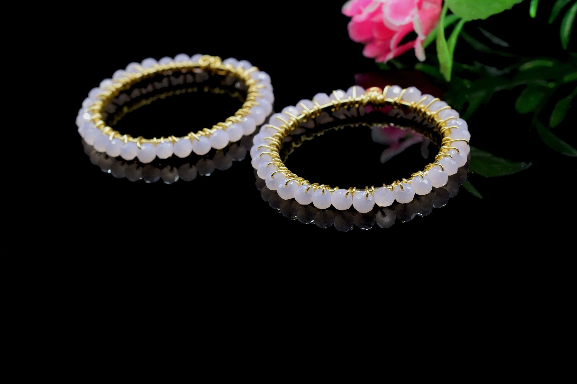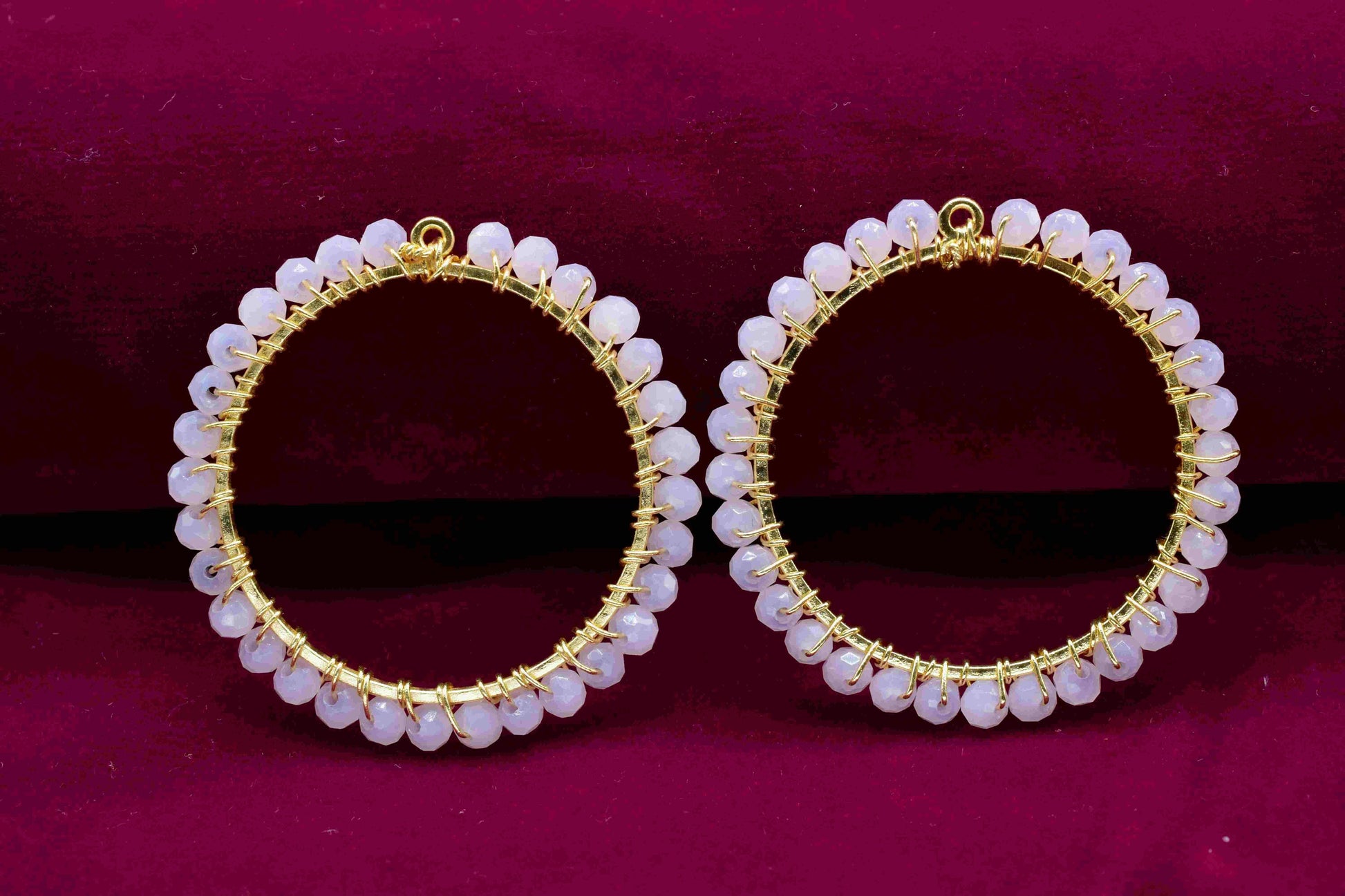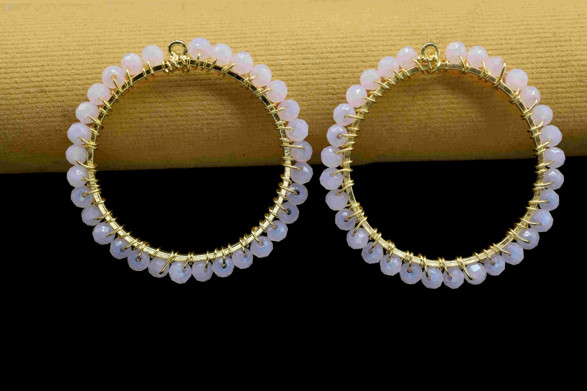 .Pink Chalcedony Wire Wrapped Dangle Connector, Beaded Hoops Earring, Circle Pendant Component, Handmade Earring, Finding Pink Quartz Jewellery