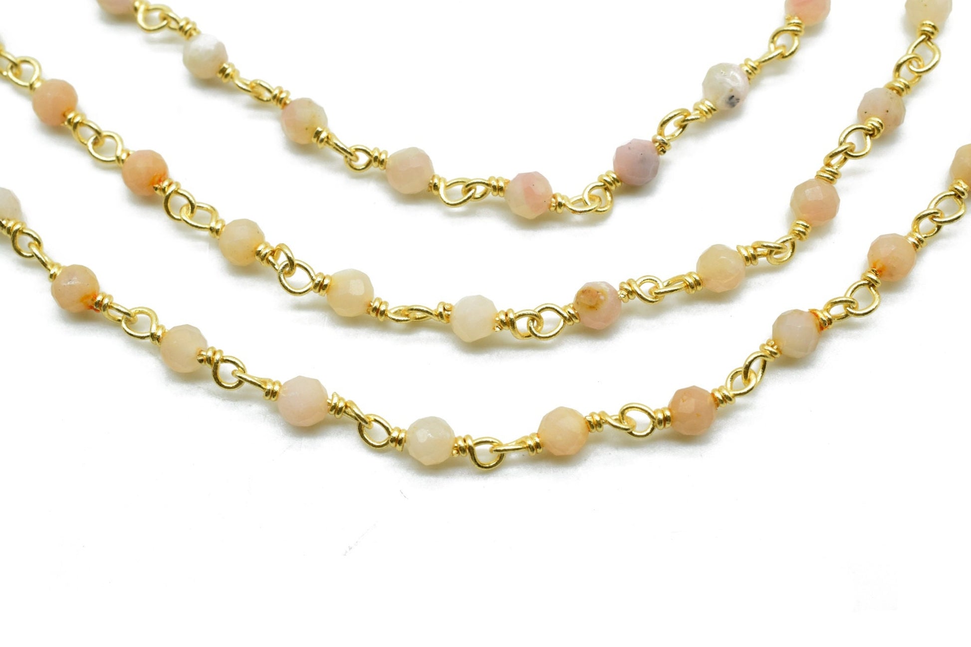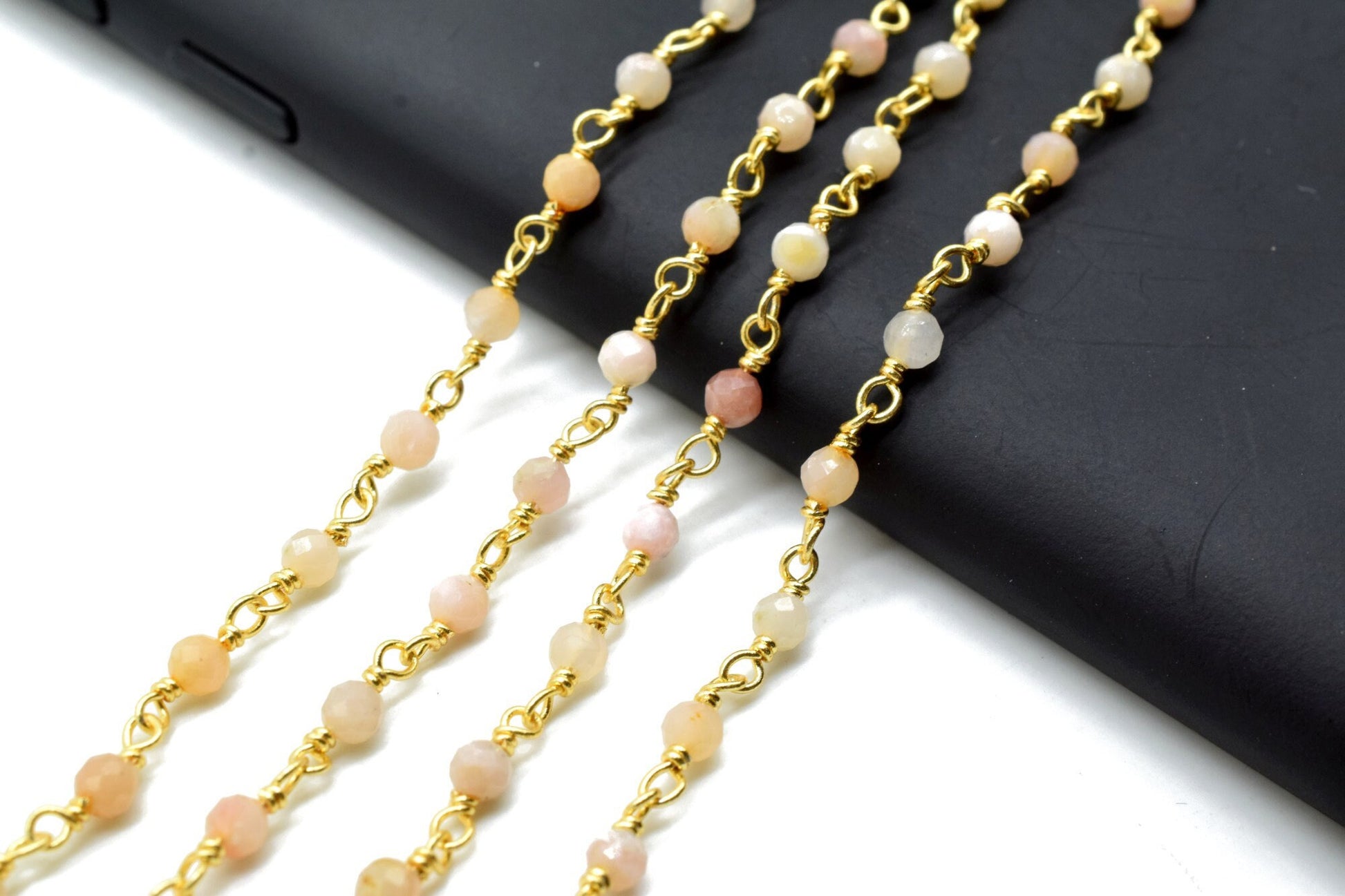 Pink opal 3mm Beaded Chain,beaded chain, rosary chain, jewelry making supplies,wire wrapped Rosary,Opal Beads, Priced Per Foot,Rosary Style