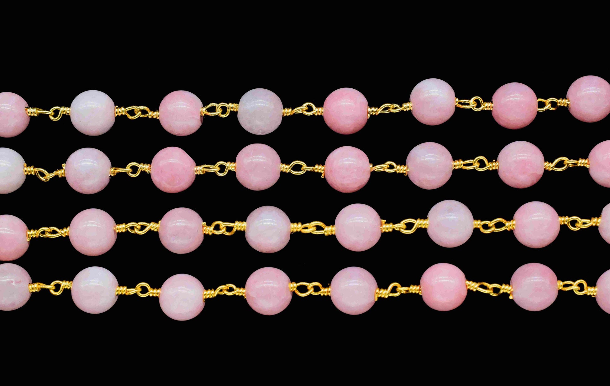 Pink Opal 6mm Smooth Beads Rosary Chain,Pink Opal Smooth Beads Chain,Pink Opal Gemstone Beaded Chain,Pink Opal Gold Plated Beaded Chain,Gift