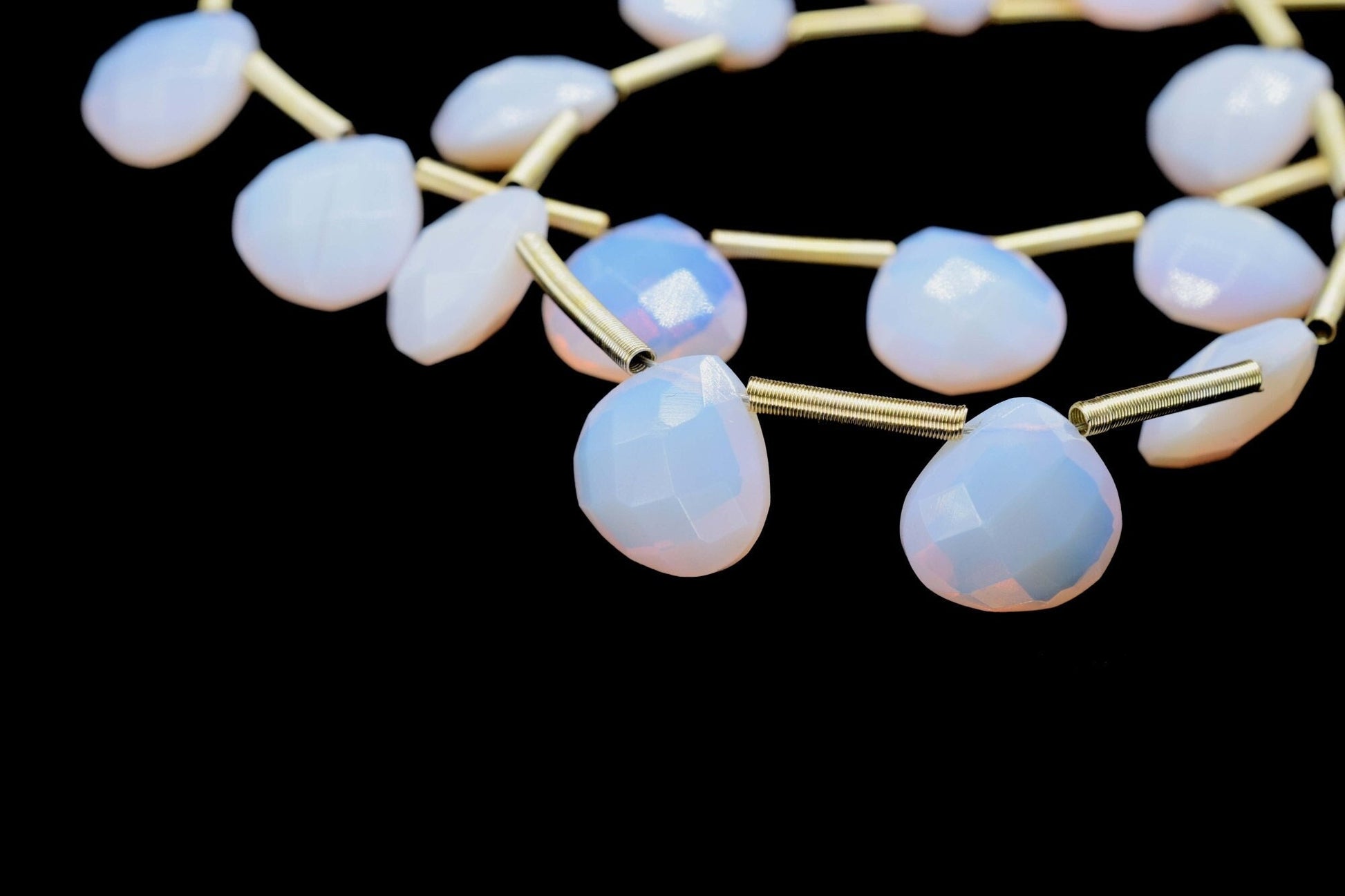 Pink Opal Faceted Heart Shape Briolettes,Opal Gemstone Heart Beads,Pink Opal 9 inch strand,Jewelry Making Supplies,Pink Opal Heart jewelry