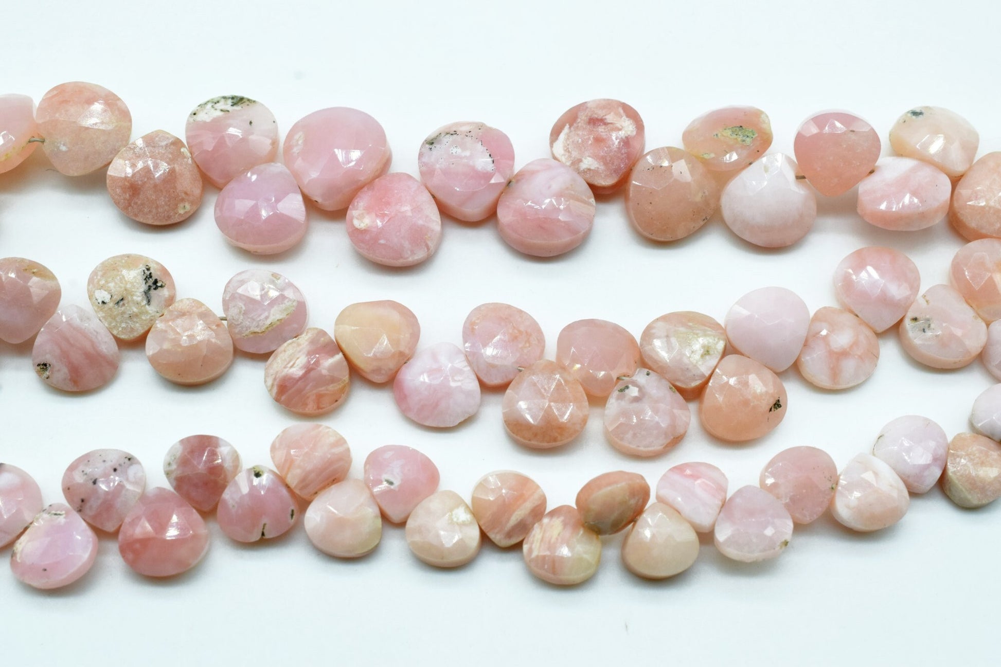 Pink opal heart Shape Briolettes,7mm pink opal heart shape strand,pink opal faceted Briolette,AAA Quality heart shape,Natural Pink Opal bead