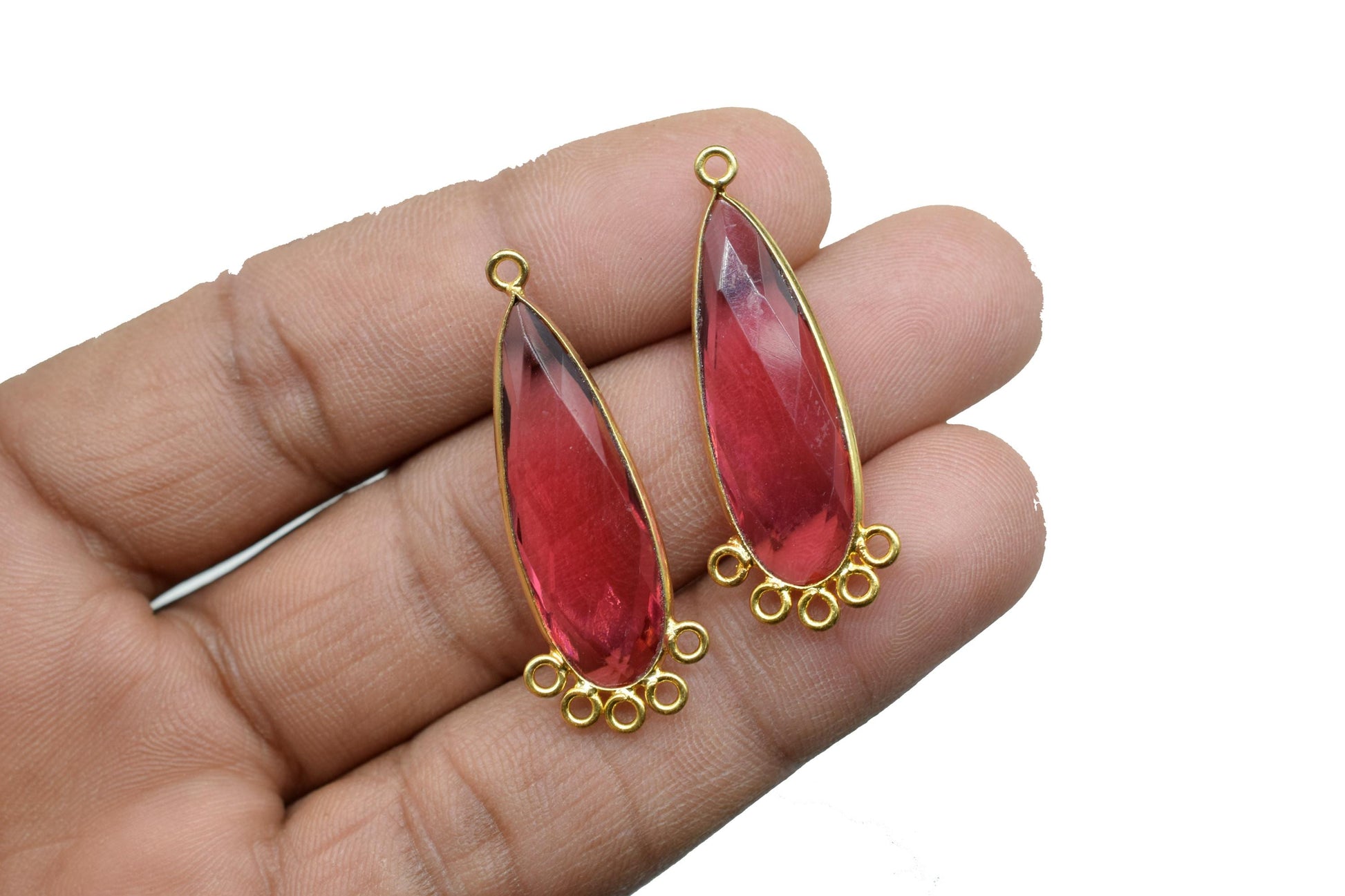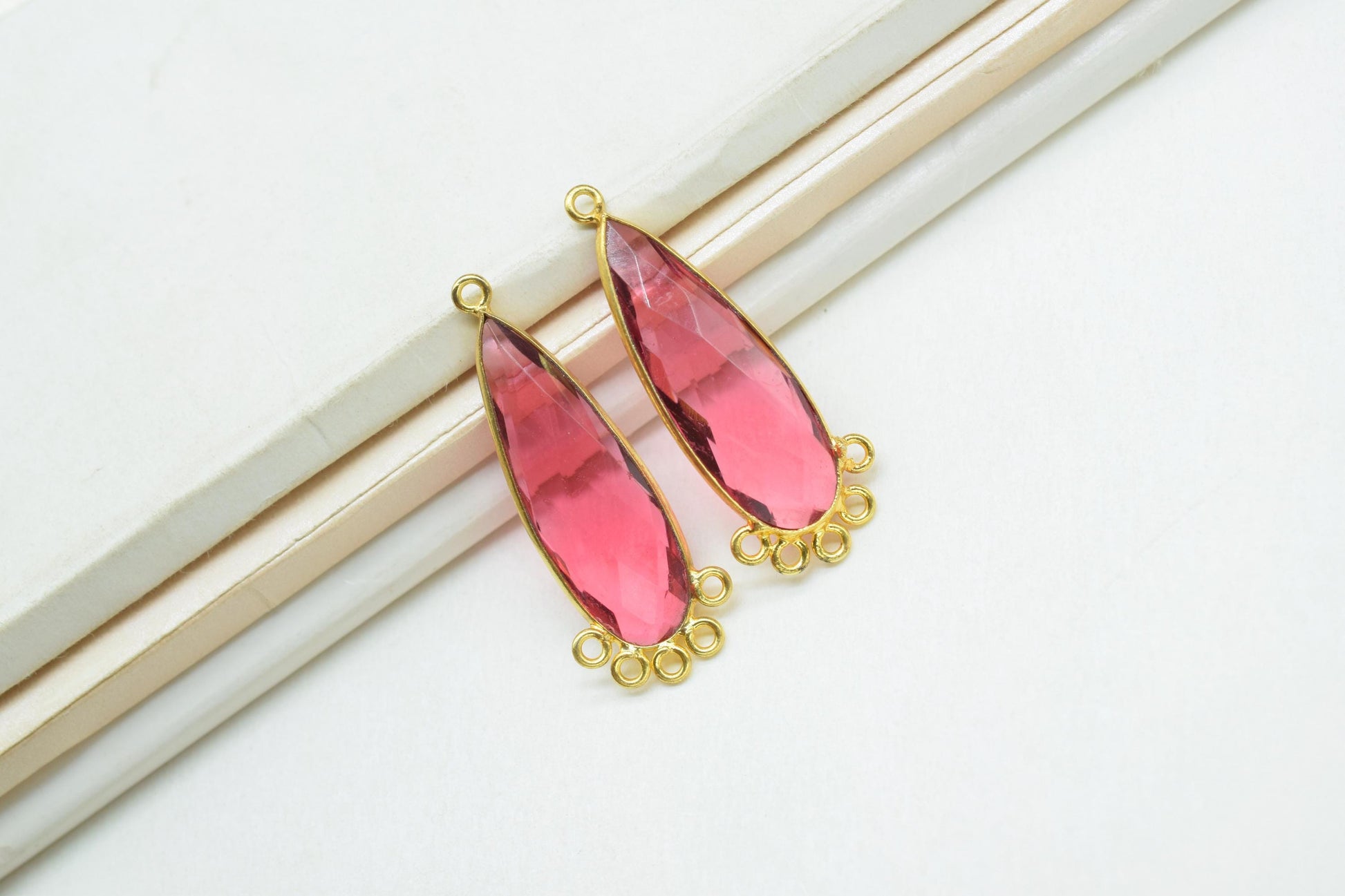 Pink Tourmaline 10x30mm Teardrop Bezel Charm/Charms Connector/Handmade Jewellery Connectors/Gemstone Brass Component/Women Jewelry/Gift