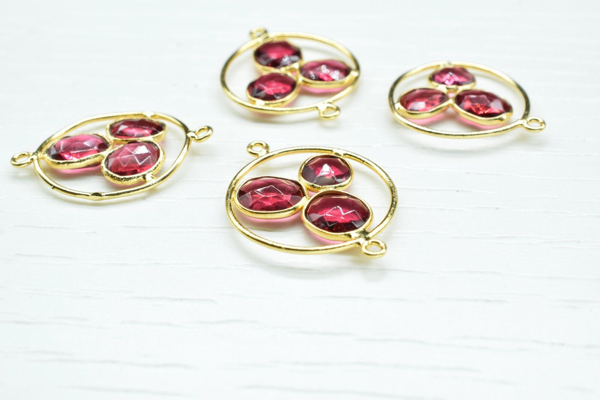 .Pink Tourmaline Charms Jewelry,Pink Tourmaline Quartz Gold Plating Double Bail Component Earring Jewelry,Pink Tourmaline Quartz Oval Pendant