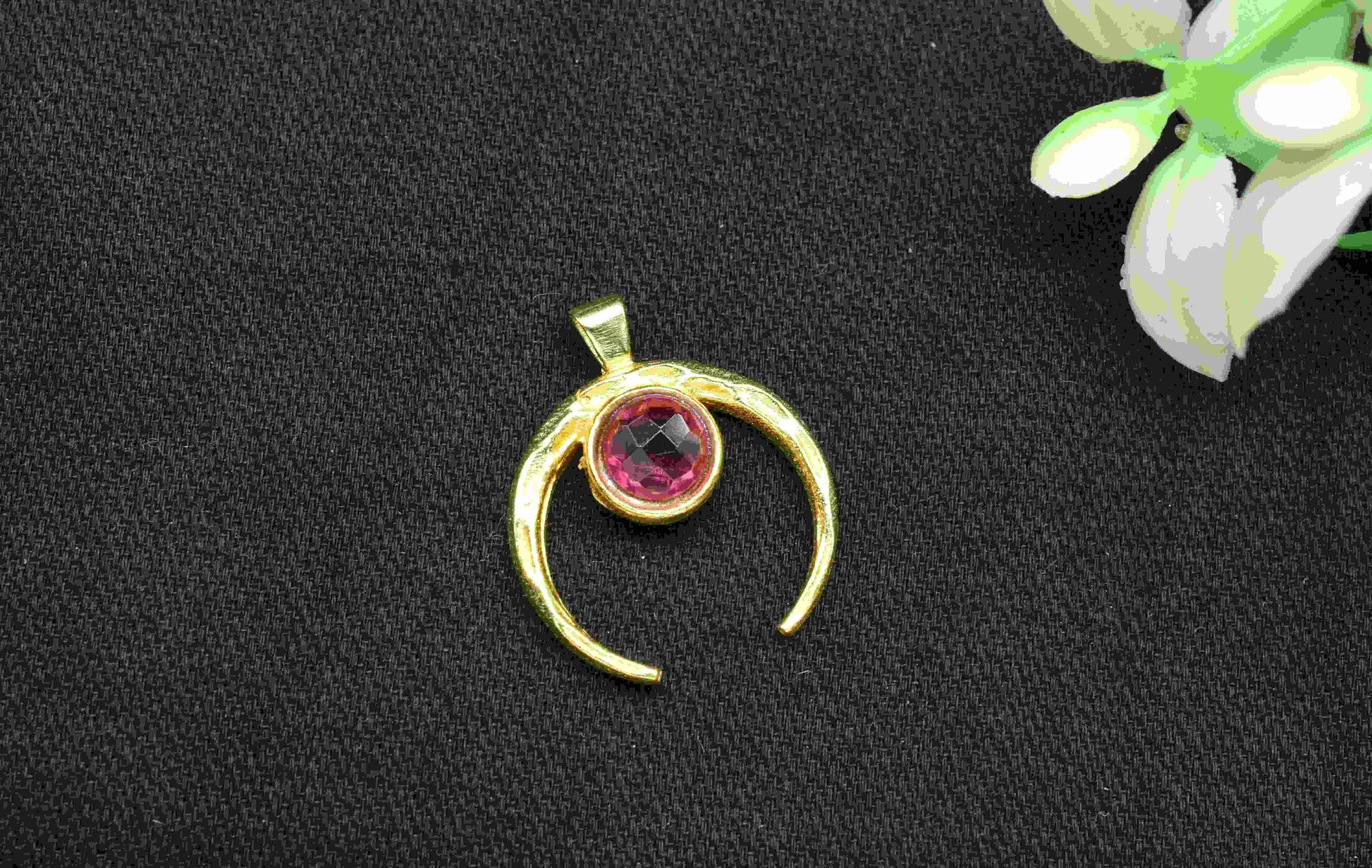 .Pink Tourmaline Pendant , Single Bail Charm ,Pink Tourmaline Connector Pendant ,Gold Plated Connectors ,Single Bail Gemstone Connector Charm