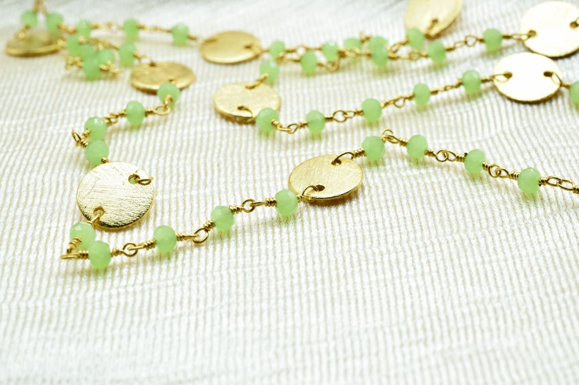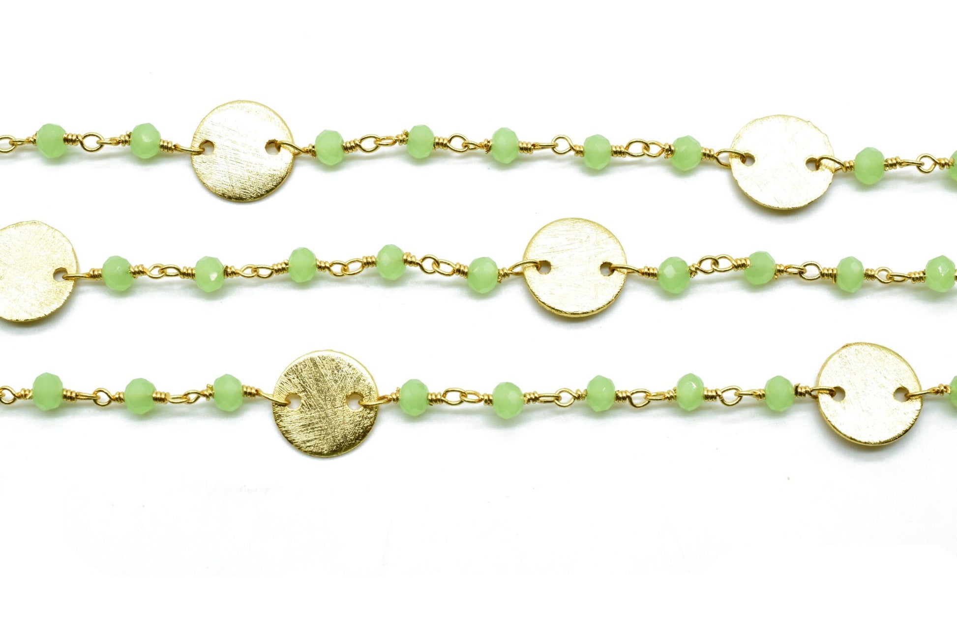 Prehnite 3mm Beaded Chain,Natural Green Prehnite Rondelle Faceted Beaded Rosary Chain,Gold Plated Wire,Jewelry Making,circle charms chain,