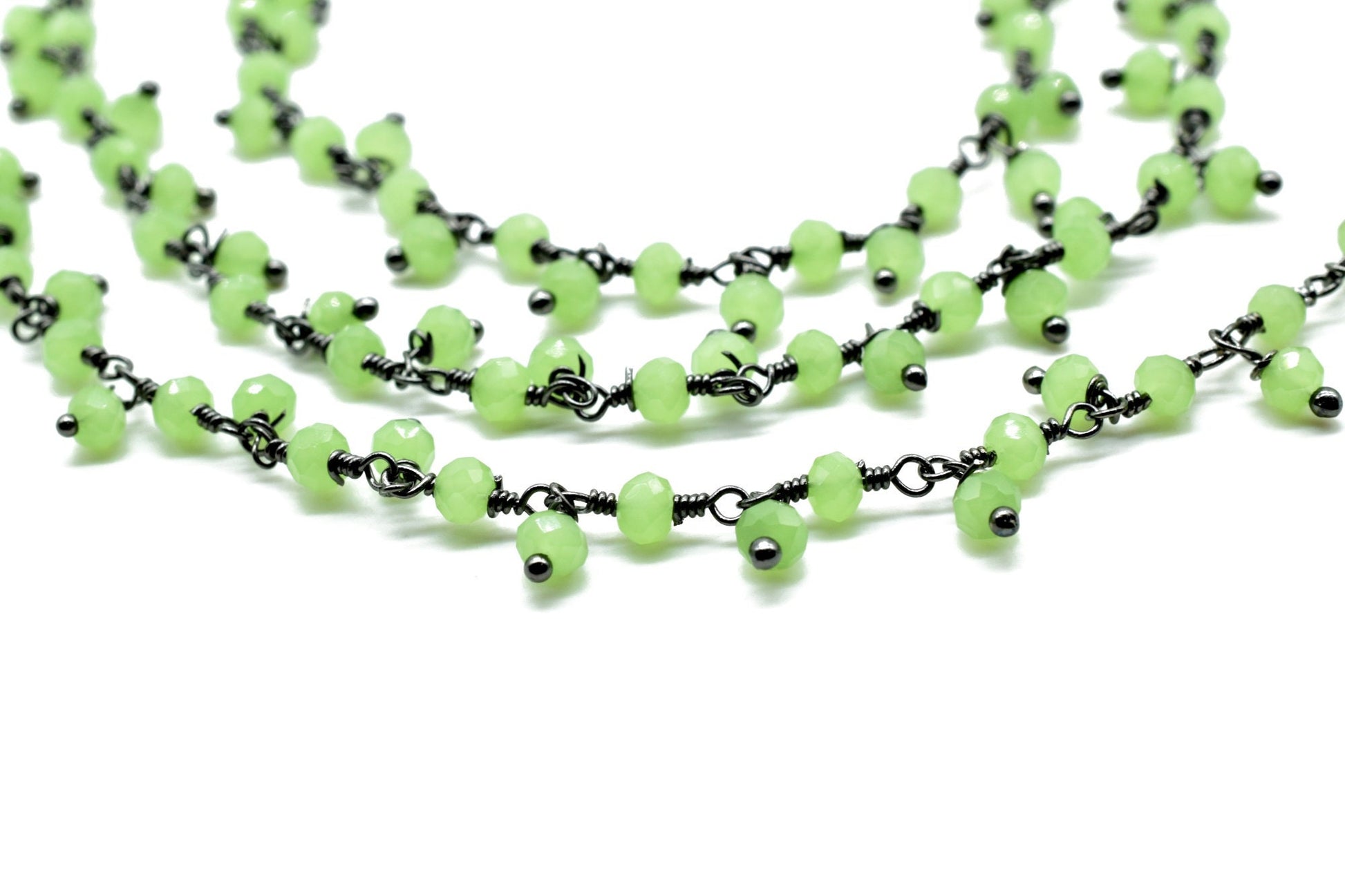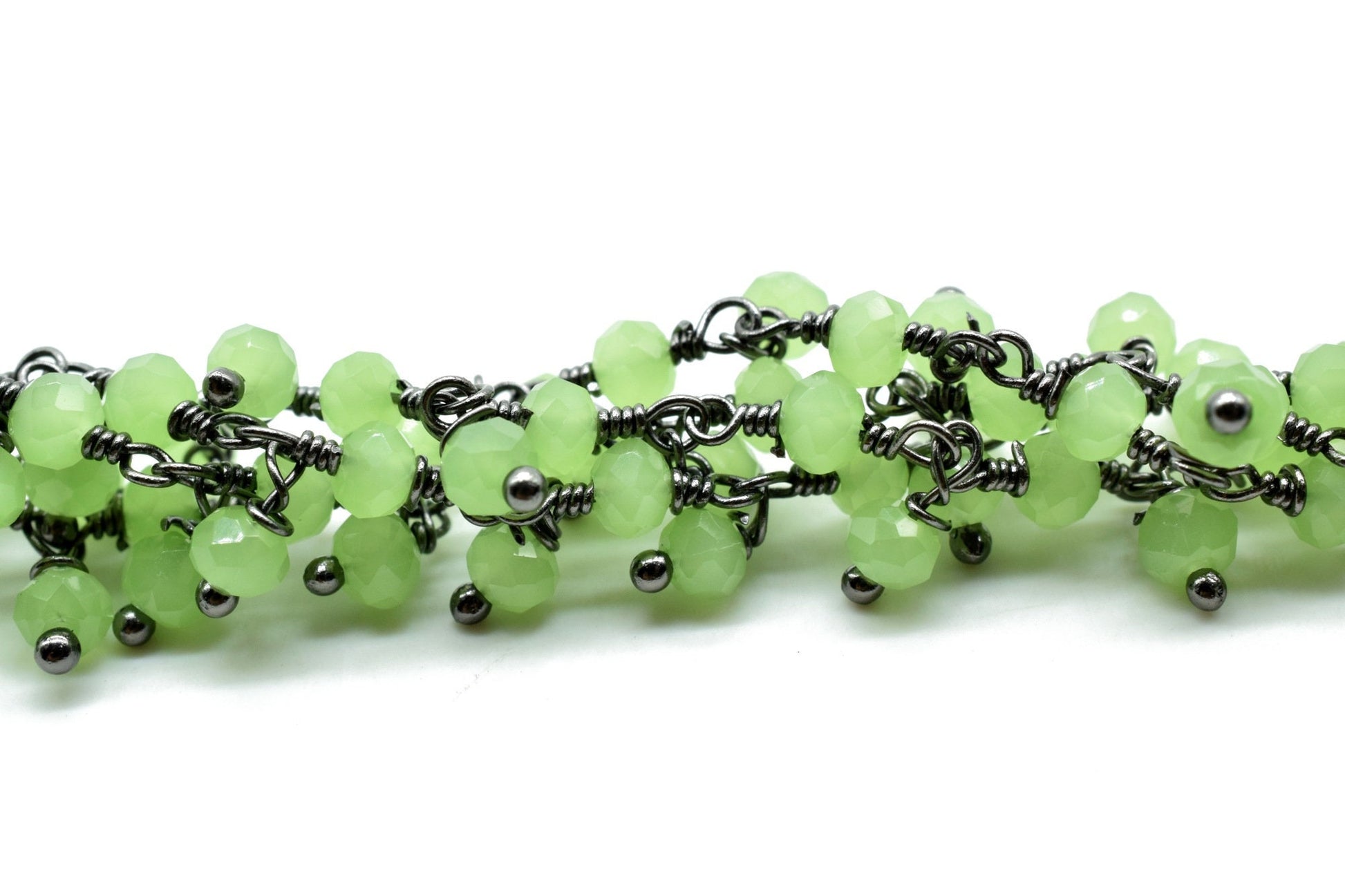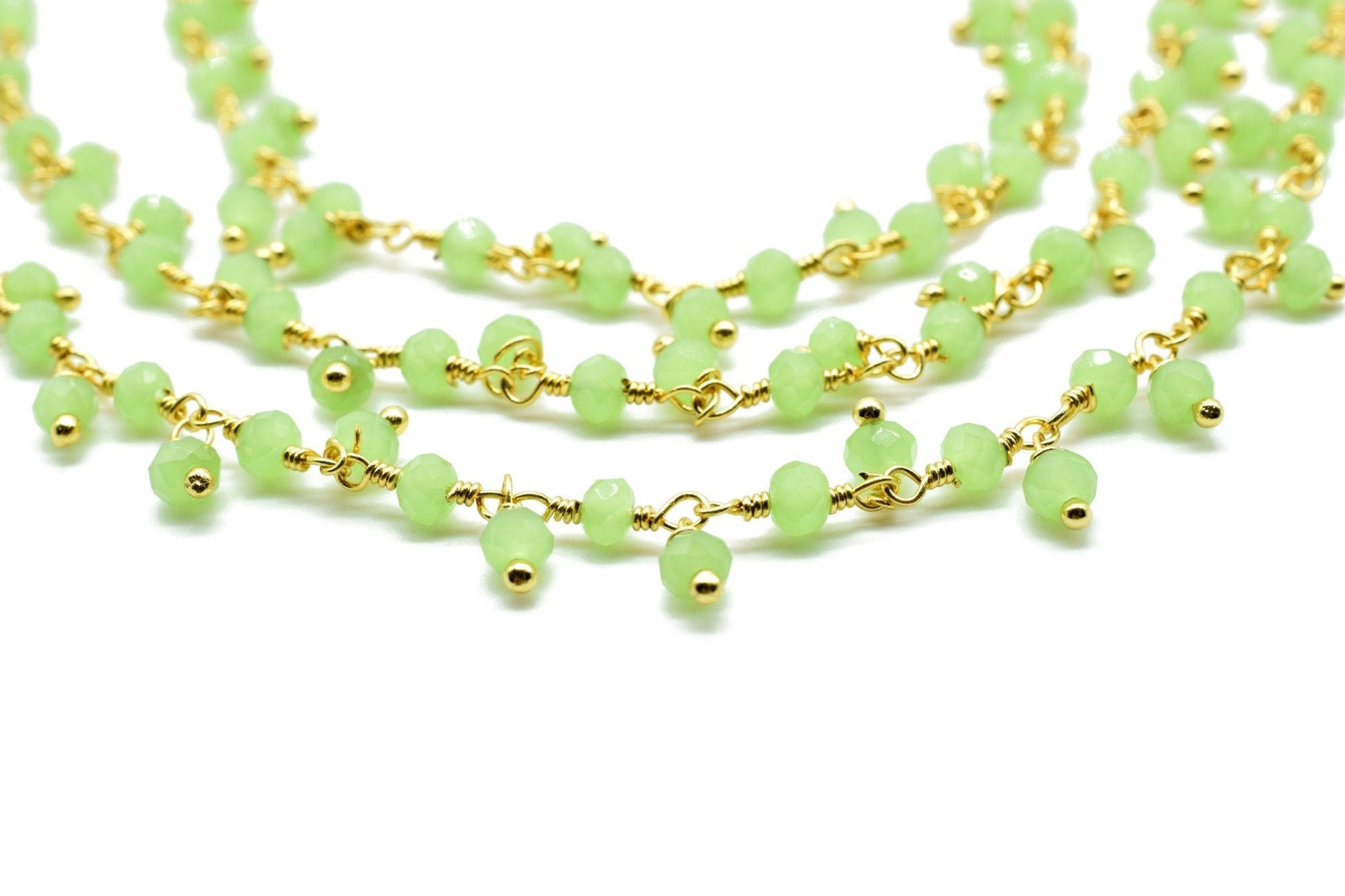 Prehnite Cluster Beaded Chain,Bead Chain,Dangling Chain,Thick Chain, Gold Wire Wrapped Prehnite Quartz Beaded chain,Handmade beaded chains