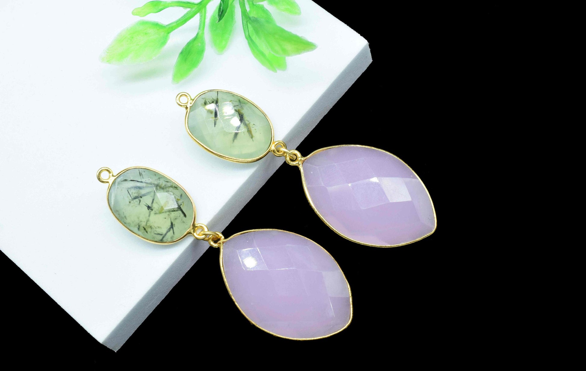 .Prehnite Dangle pendants,Handmade jewelry,Rose Quartz pendant Charms,Component pendant,Station Link,Multi Gemstone Connector,Bezel Jewelry