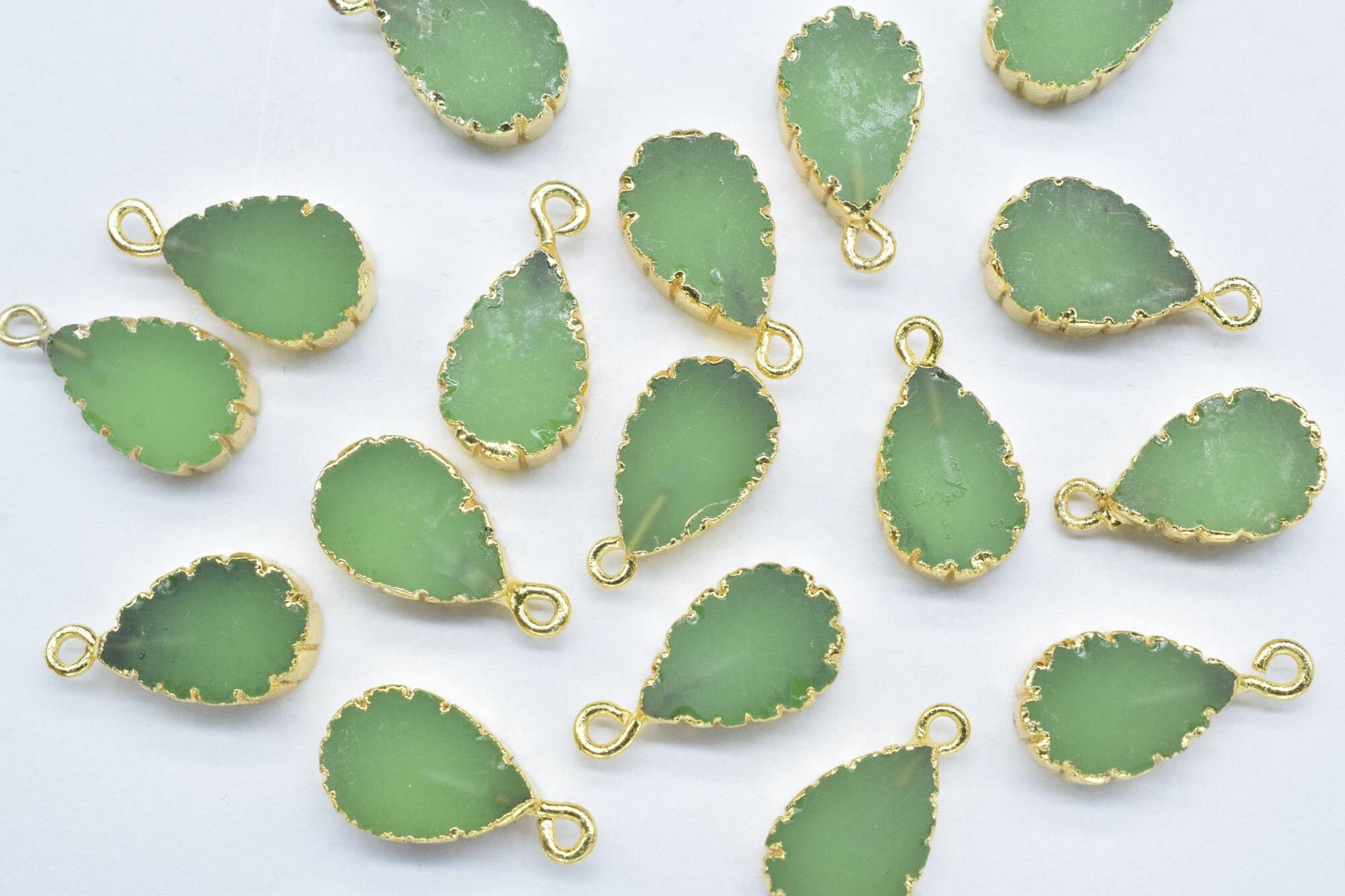 .Prehnite Pendant Charms,Gemstone Single Bail Connectors,Necklace Connectors,Teardrop Pendant Jewelry,Handmade Cabechon Pendant Charms