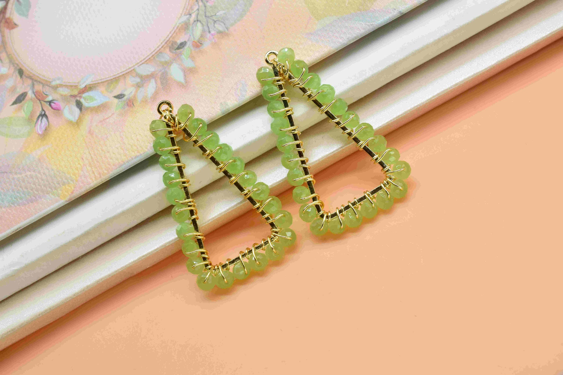.Prehnite Wire Wrapped Dangle Earring, Gemstone Component, Handmade Connector,Beaded Earring Connector,Finding Necklace,Triangle Jewellery,Gift