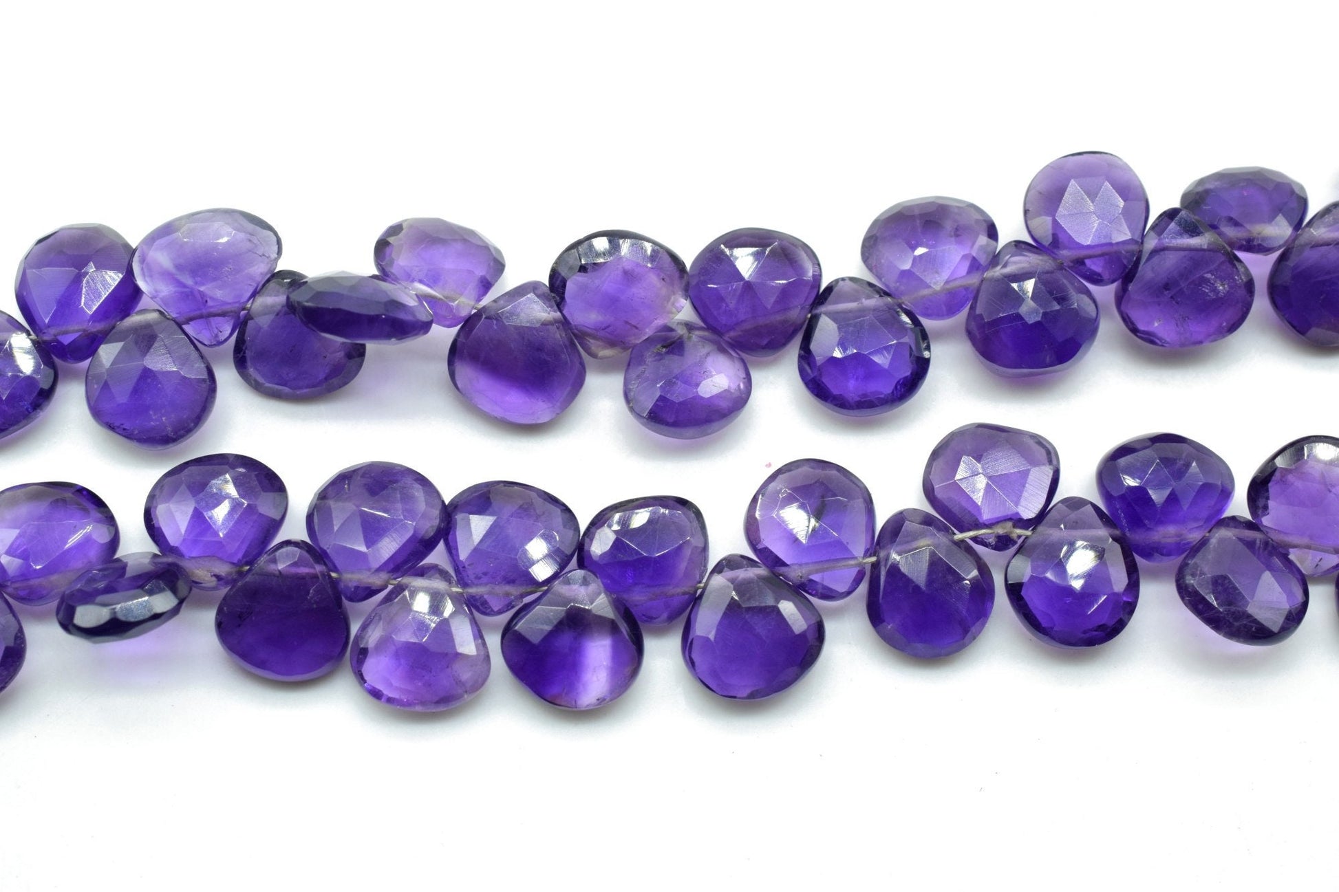 Purple Amethyst 8mm heart shape faceted Briolette,Amethyst beads,Amethyst jewelry making beads,Amethyst briolettes 8 inch strand,Amethyst