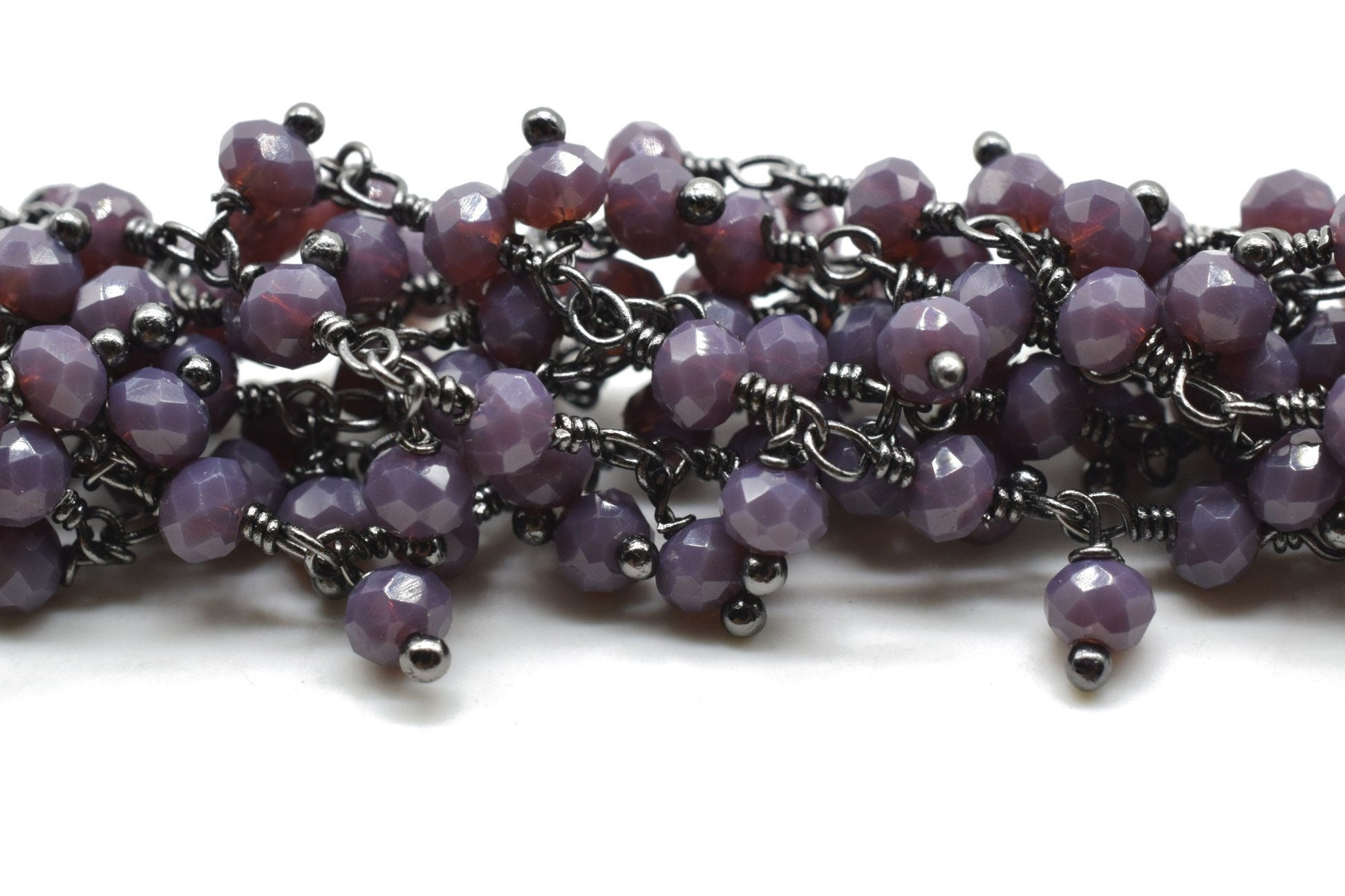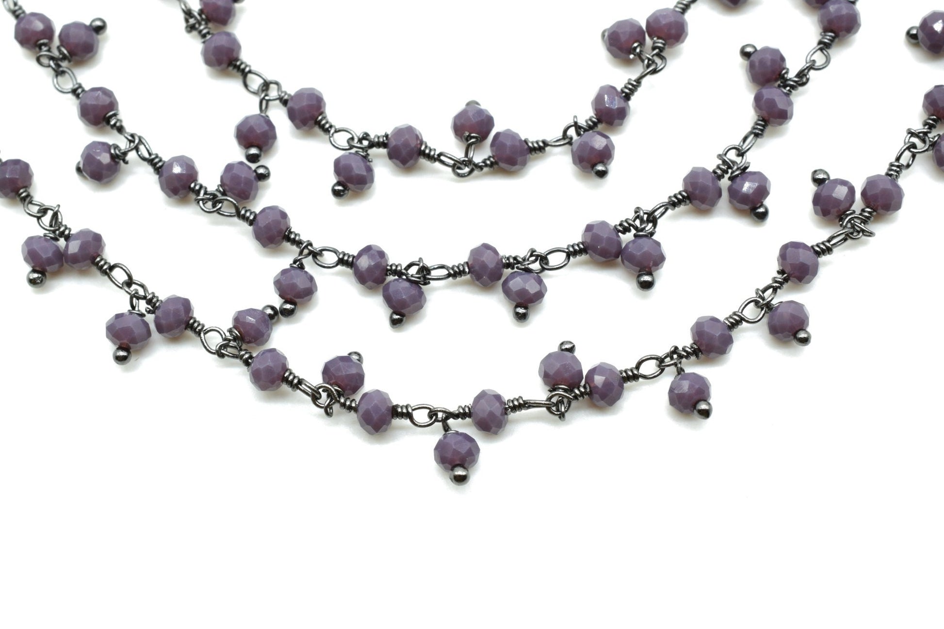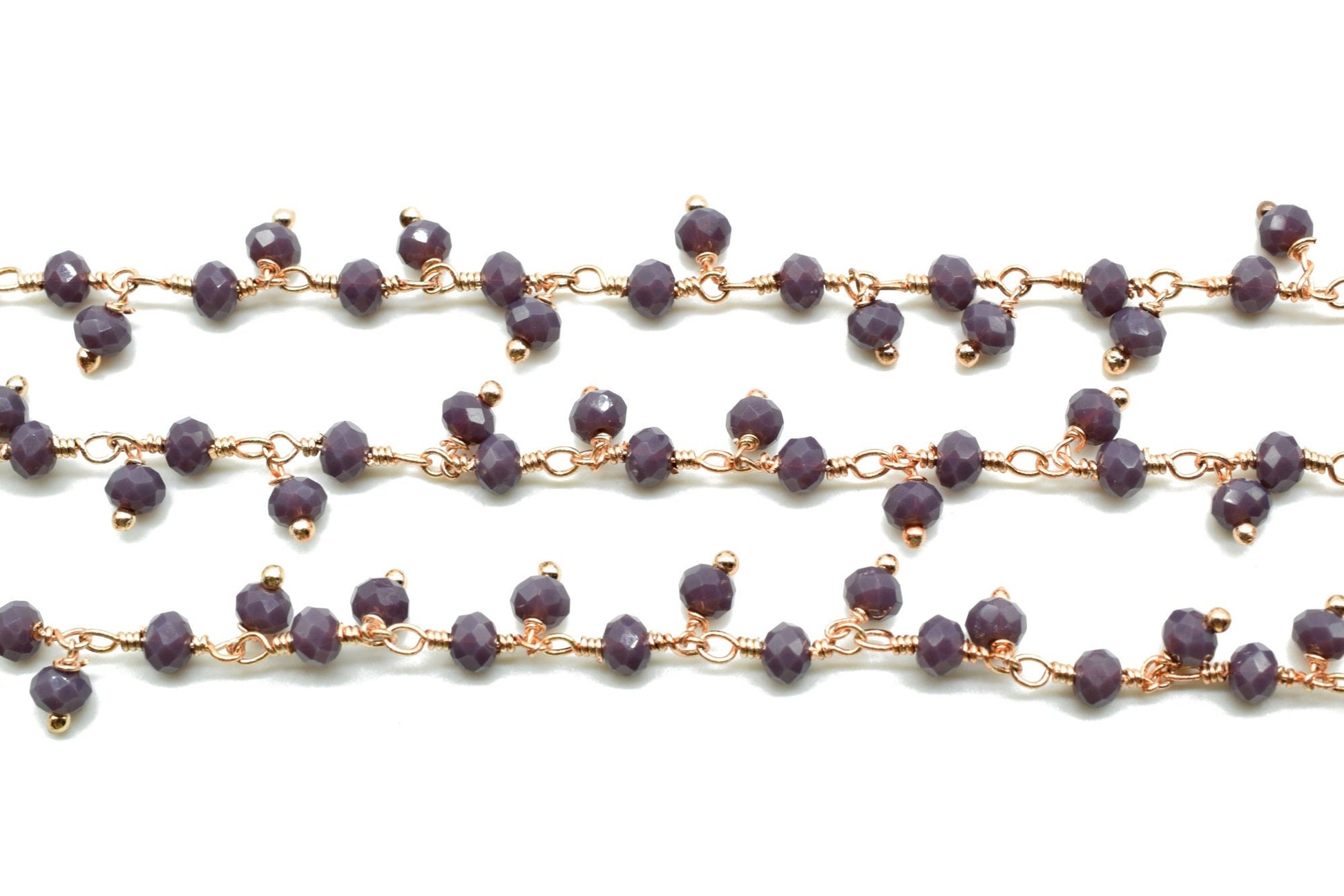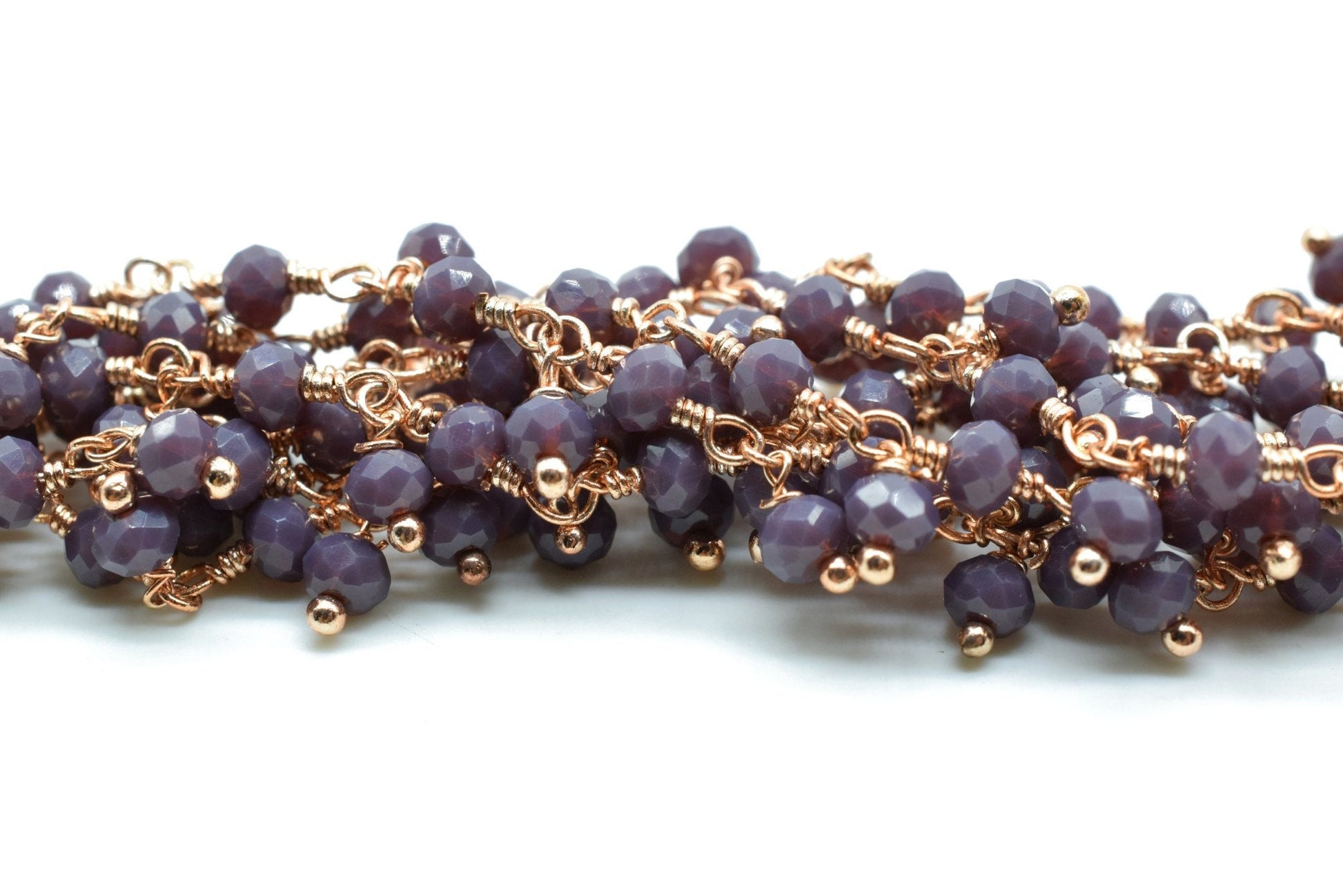 Purple Chalcedony Cluster Rosary Chain,Handmade Jewelry Making Wire Wrapped Beaded Chain By Foot, Necklace, Chalcedony CLUSTER Rosary chain