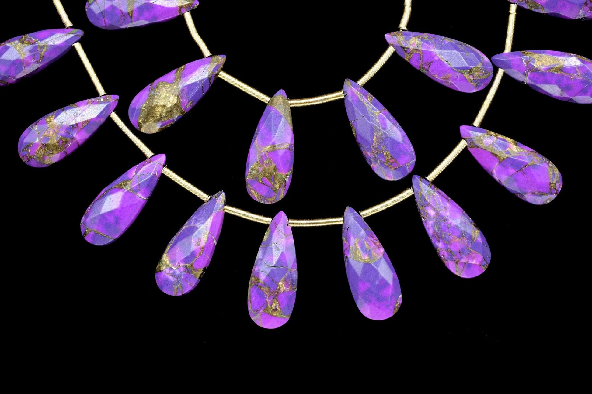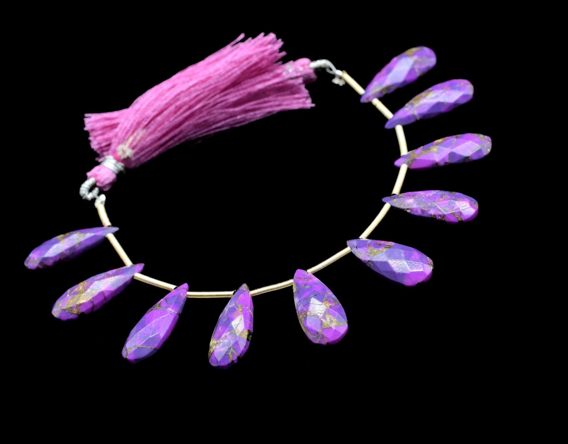 .Purple Copper Turquoise Faceted Briolette,Gemstone Teardrop Bead,Purple Turquoise Teardrop,Jewellery Making Supplies,Copper Turquoise jewelry