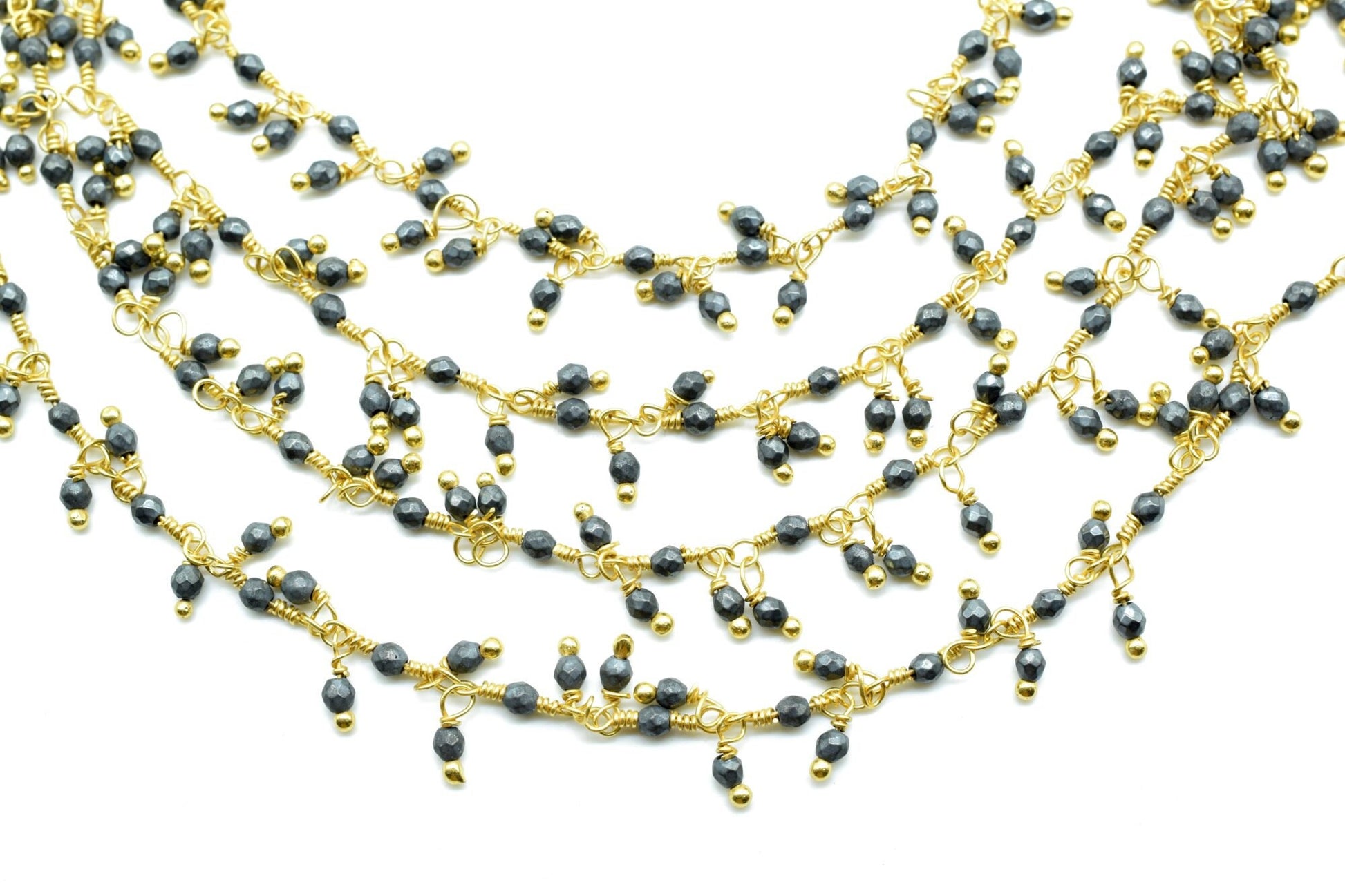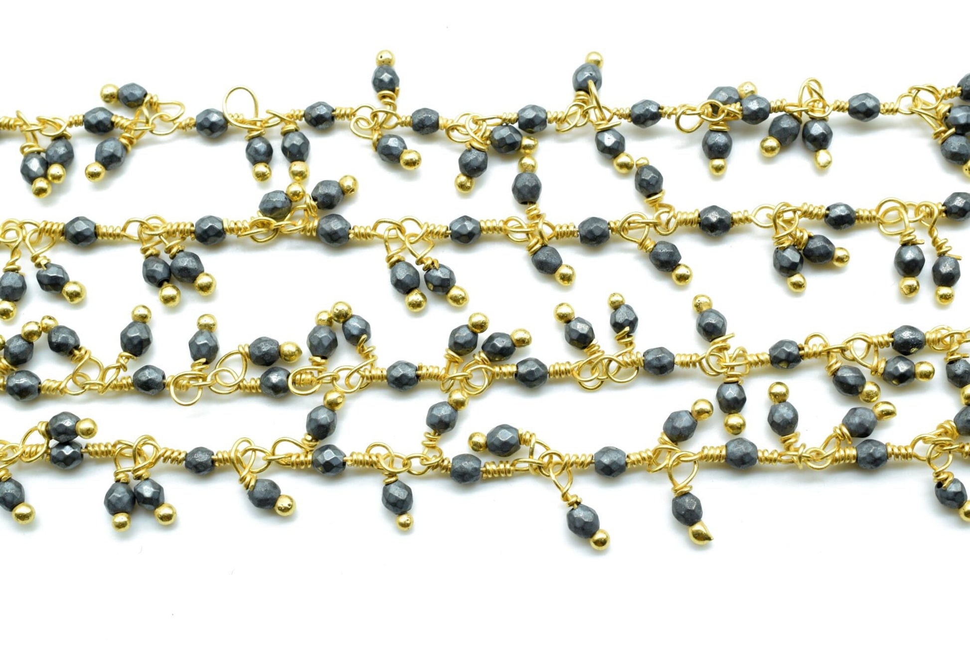 Pyrite 2mm Cluster Rosary Chain,Pyrite Rosary Faceted Chain,Wire Wrapped Beaded Chain By Foot,Unqiue beaded Chain,Pyrite Dangling Chain,