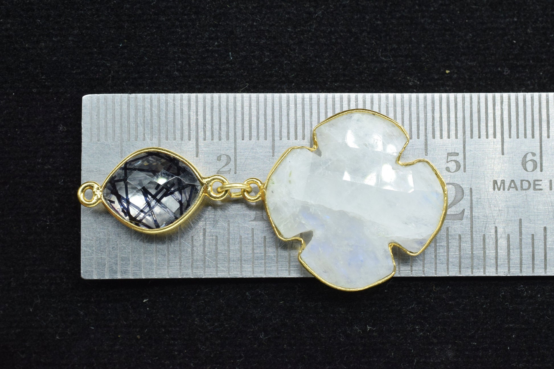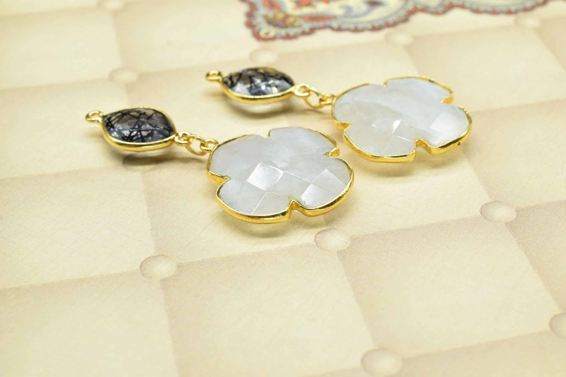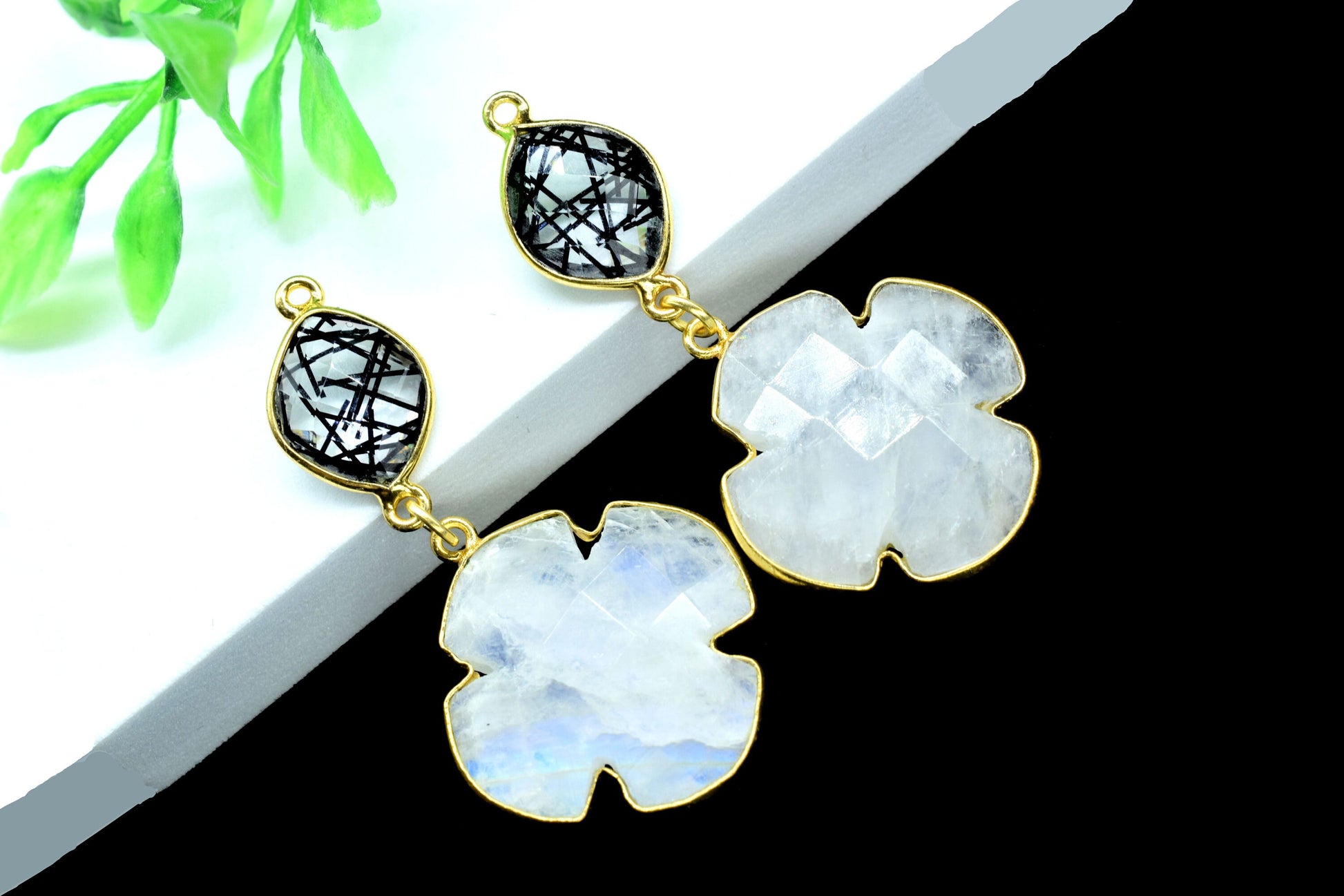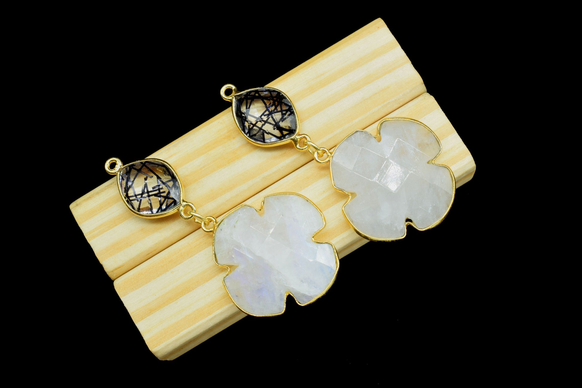 Rainbow Dangle Component Earring,Multi Stone Dangle Earring,Statement Earring,Handmade,Black Rutile pendant Connector,Gemstone Bezel pendant