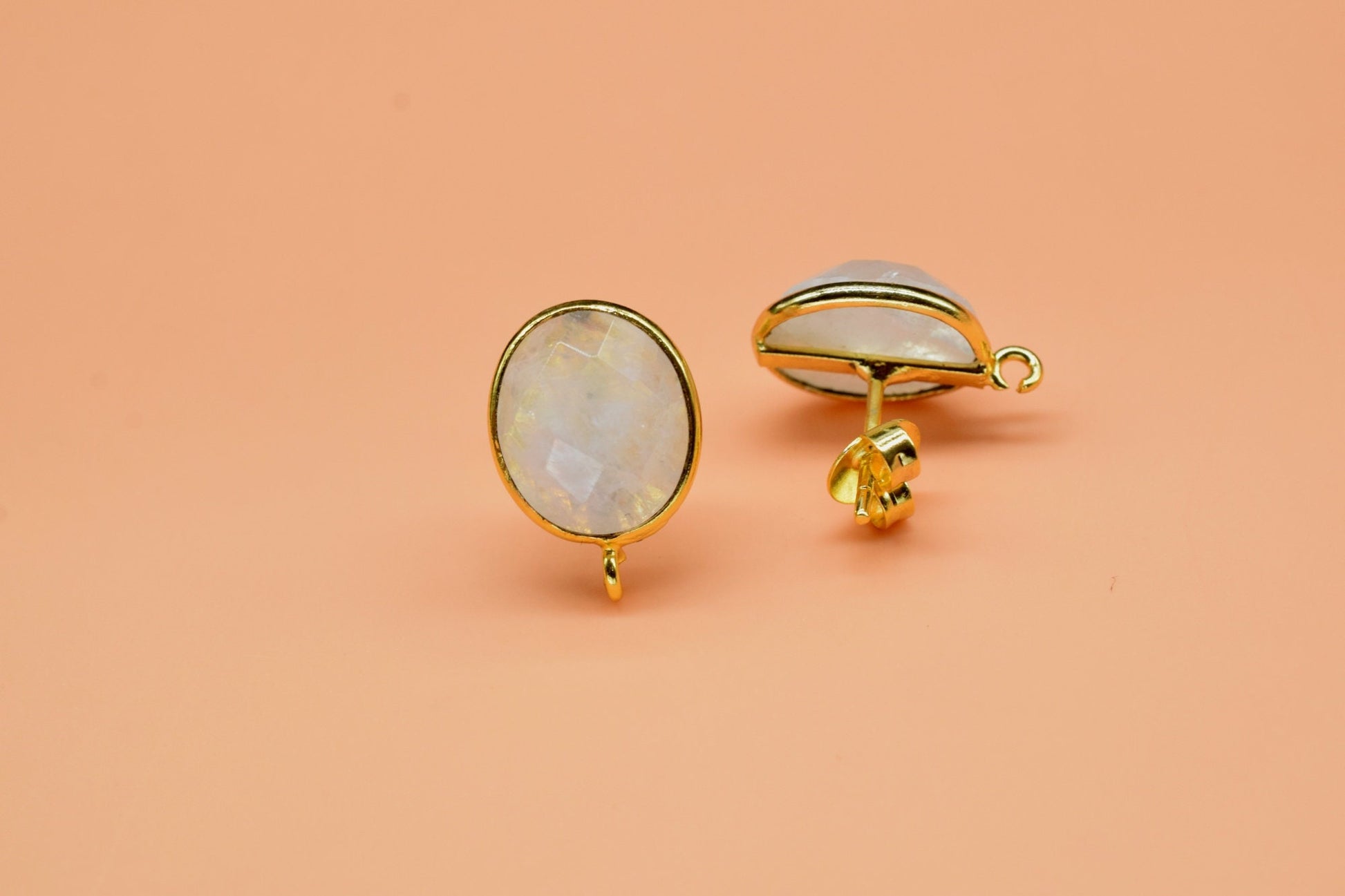 Rainbow Moonstone Oval Shape Earring Connector,Earring Making Connectors,Moonstone connectors post studs,June Birthstone,Bail Connectors,