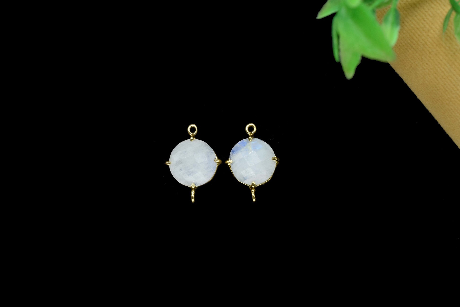 .Rainbow Moonstone Round Connector,double bail connector,Rainbow Beads jewelry,Handmade Gemstone Bezel,Moonstone Prong Bezel Charms Gift for