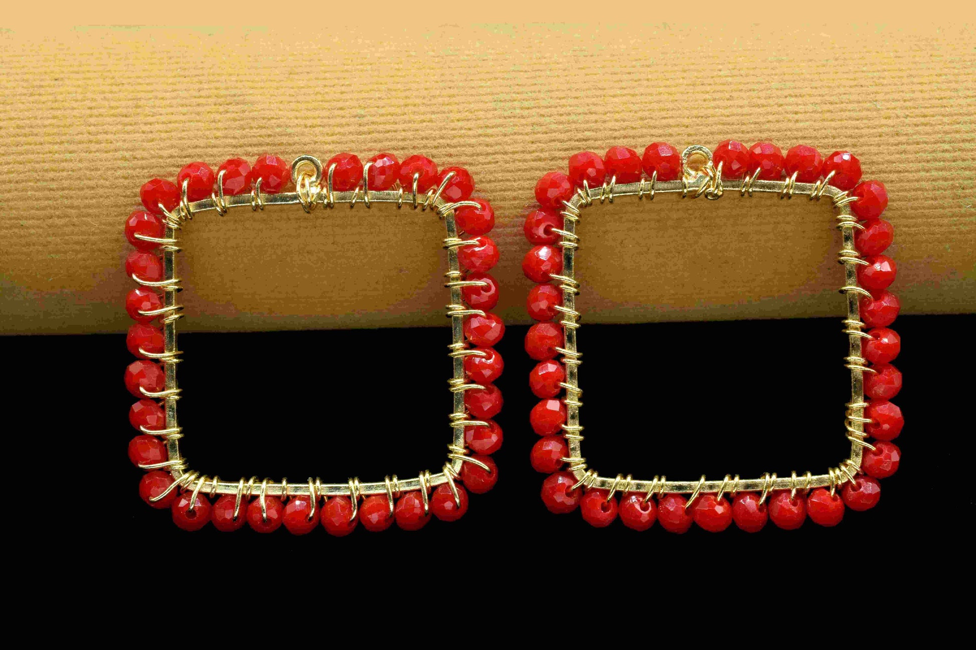 .Red Coral Wire Wrapped Dangle Earrings, Component Jewellery, Red Coral Square Shape Pendant, Gemstone Component Dangle, Component Finding Necklace