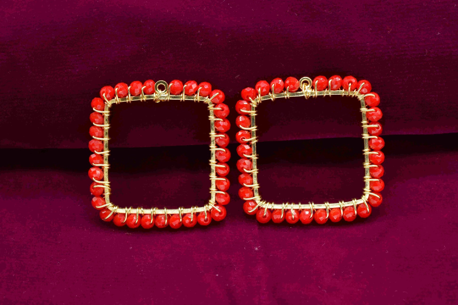 Red Coral Wire Wrapped Dangle Earrings,Component Jewelry,Red Coral Square Shape Pendant,Gemstone Component Dangle,Component Finding Necklace