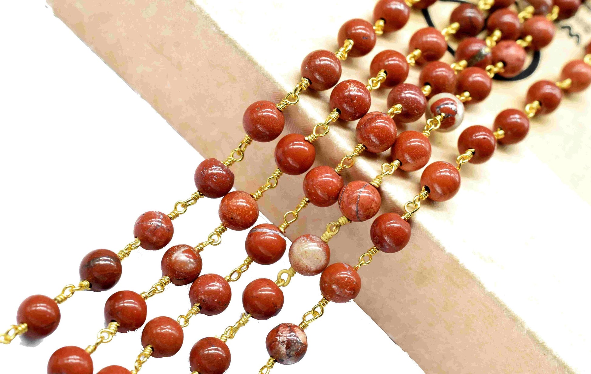 Red Jasper Smooth Gemstone 6mm Round Beads Rosary,Red Jasper Wire Wrapped Beads Chain,Red Jasper Beads Chains,Bulk Wholesale Beads Chains