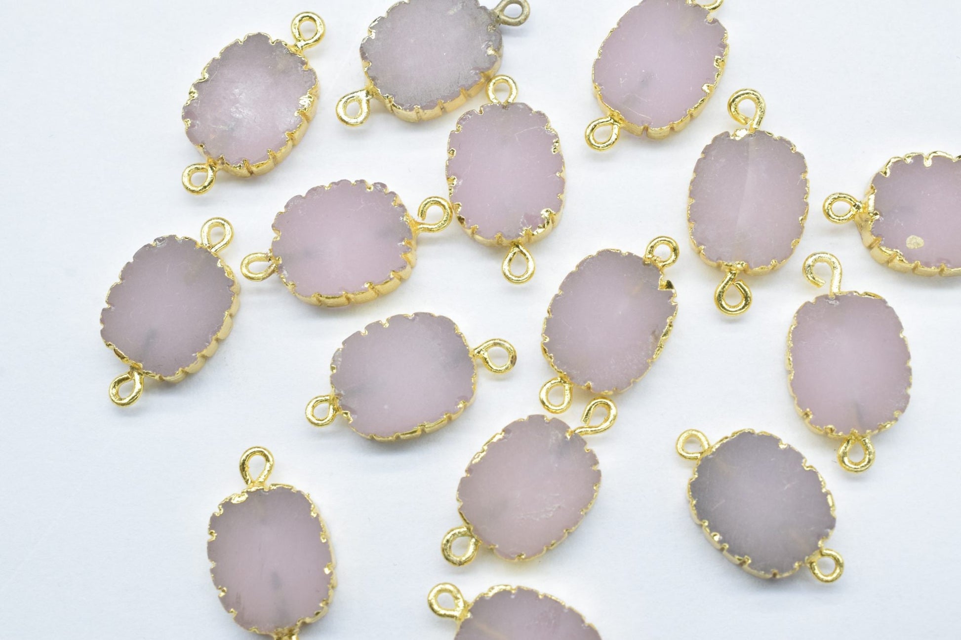 .Rose Chalcedony Oval Shape Pendants,Handmade Cabechon Pendant Charm necklace,Gemstone Single Bail Connector,Rose Quartz Pendant Jewelry Gift