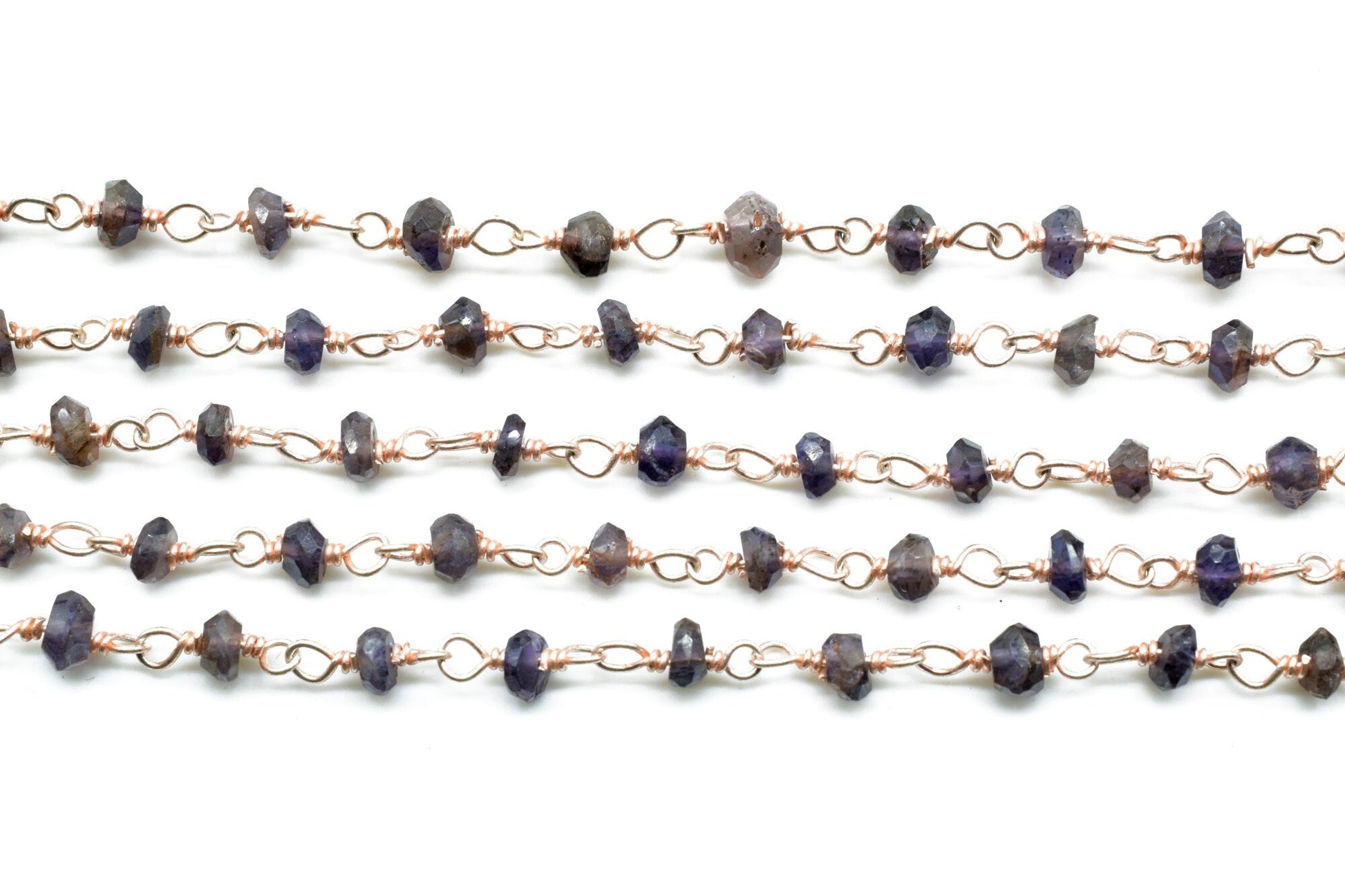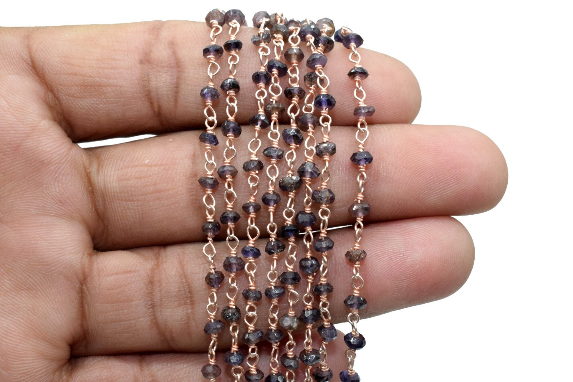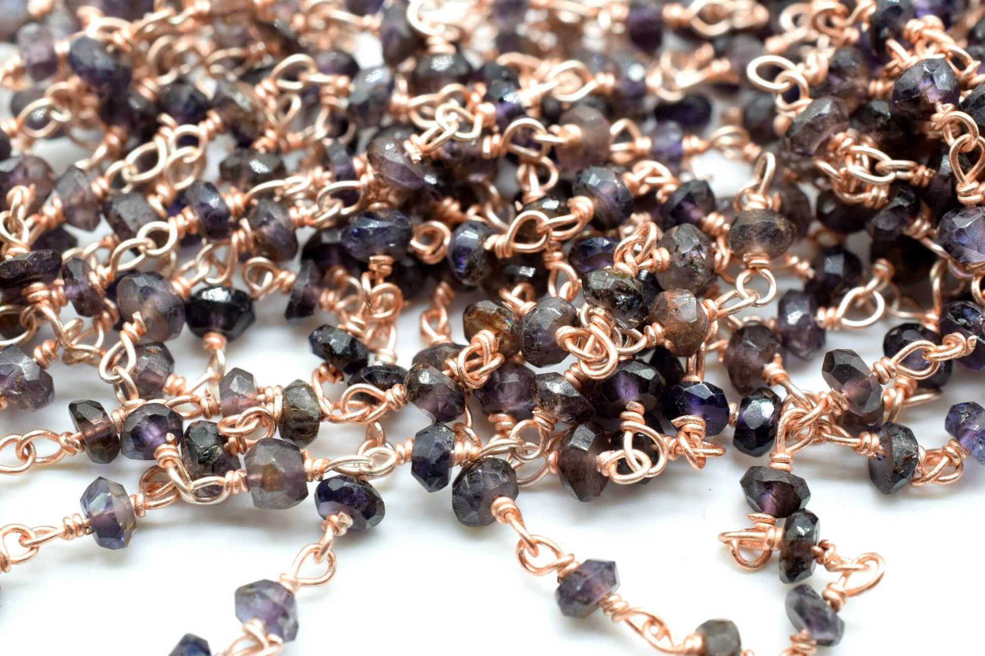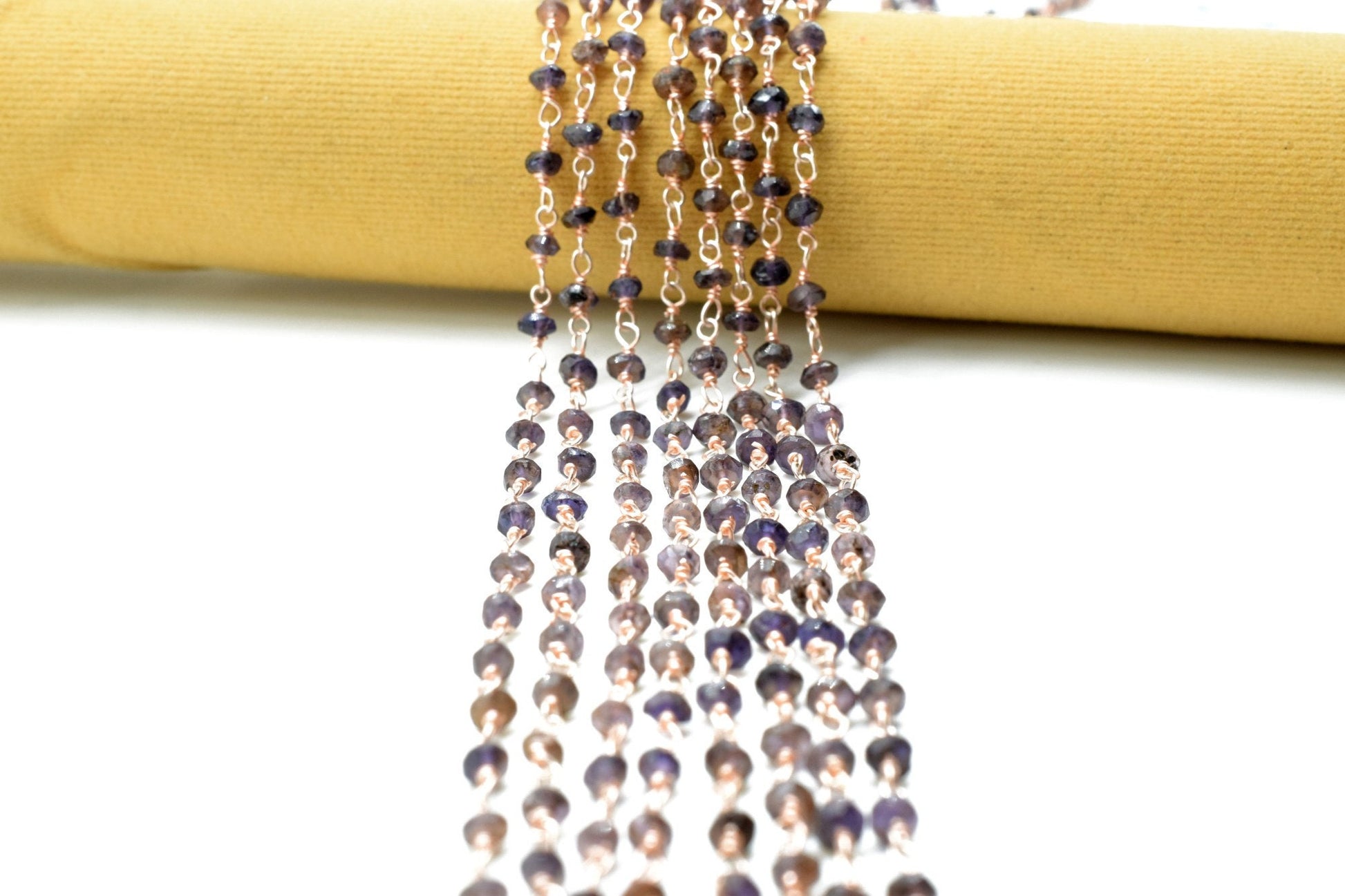 Rose Gold Plated iolite Rosary Chain,Purple Crystal Beaded Chains,3mm iolite Beaded Chain,Wholesale Price Rosary Roll,Faceted beads,