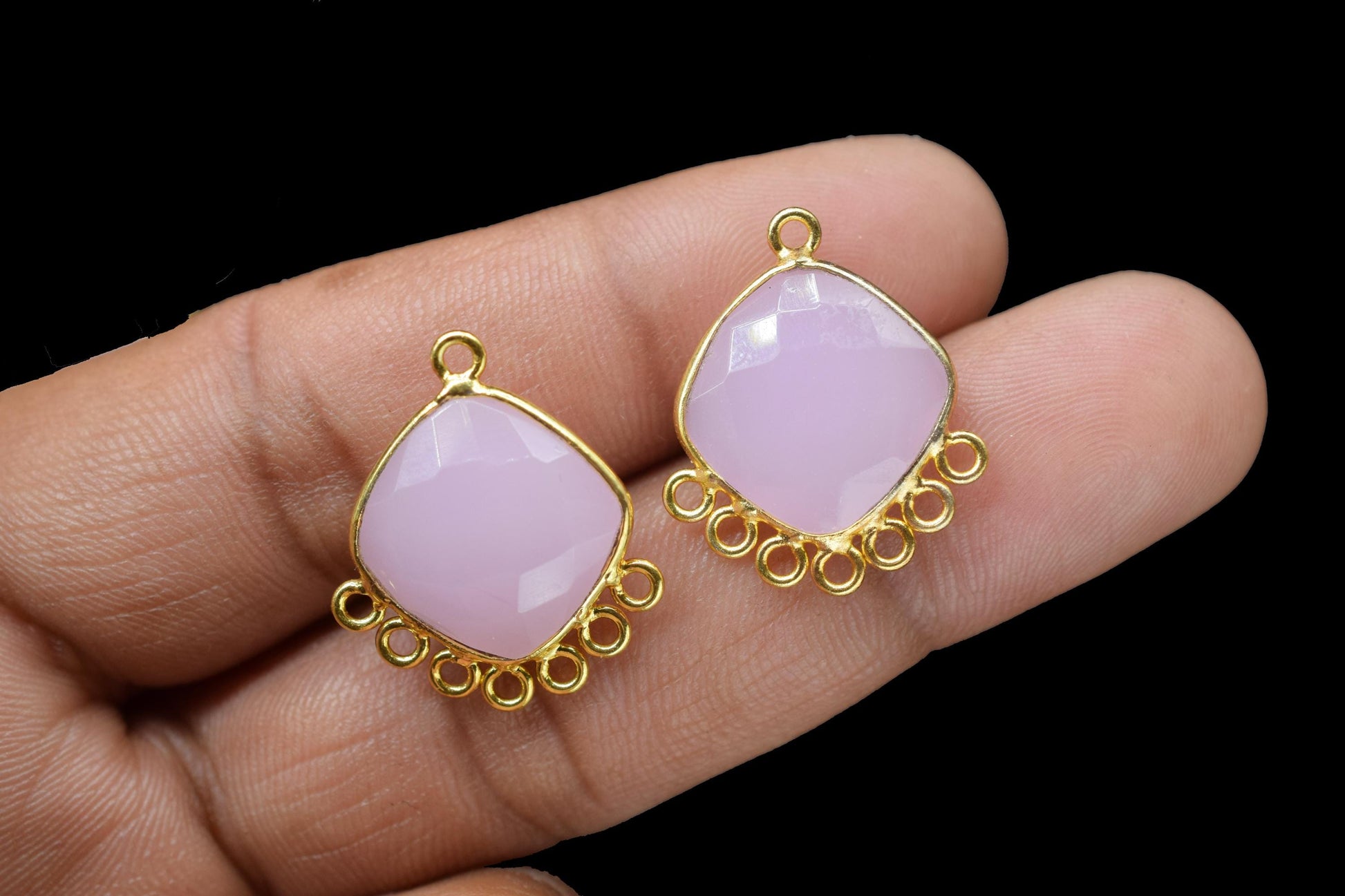 Rose Quartz 14mm Cushion Bezel Charms/Gemstone Single Bail/Component charm/Handmade Jewellery Connectors/Women Jewelry/Handmade Connector